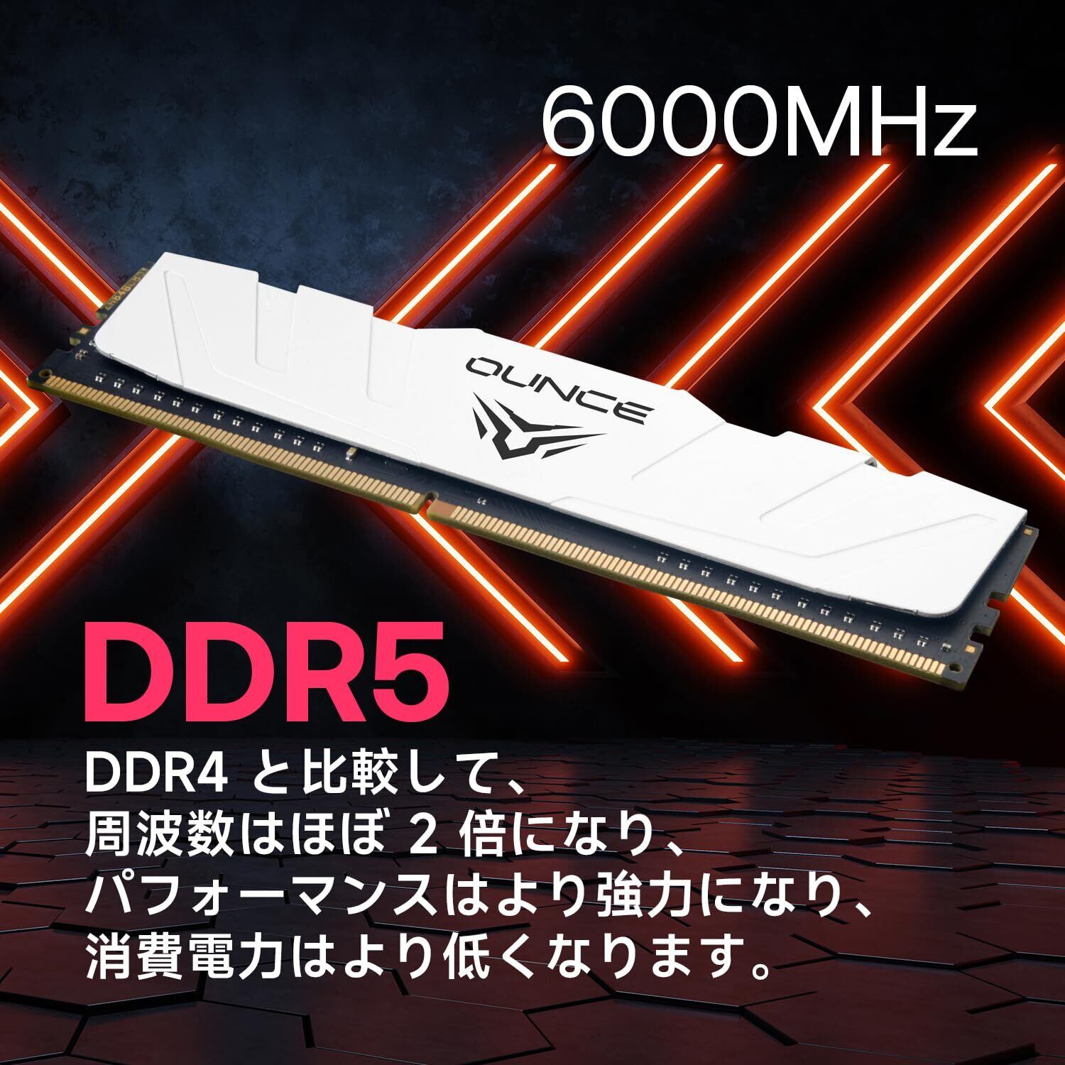 DDR5 32GB-6000MHz デスクトップPC用メモリ(16GB×2枚 PC5-48000)白ヒートシンク付きシリーズ 288pin XMP 3.0/EXPO Acclamator OUNCE
