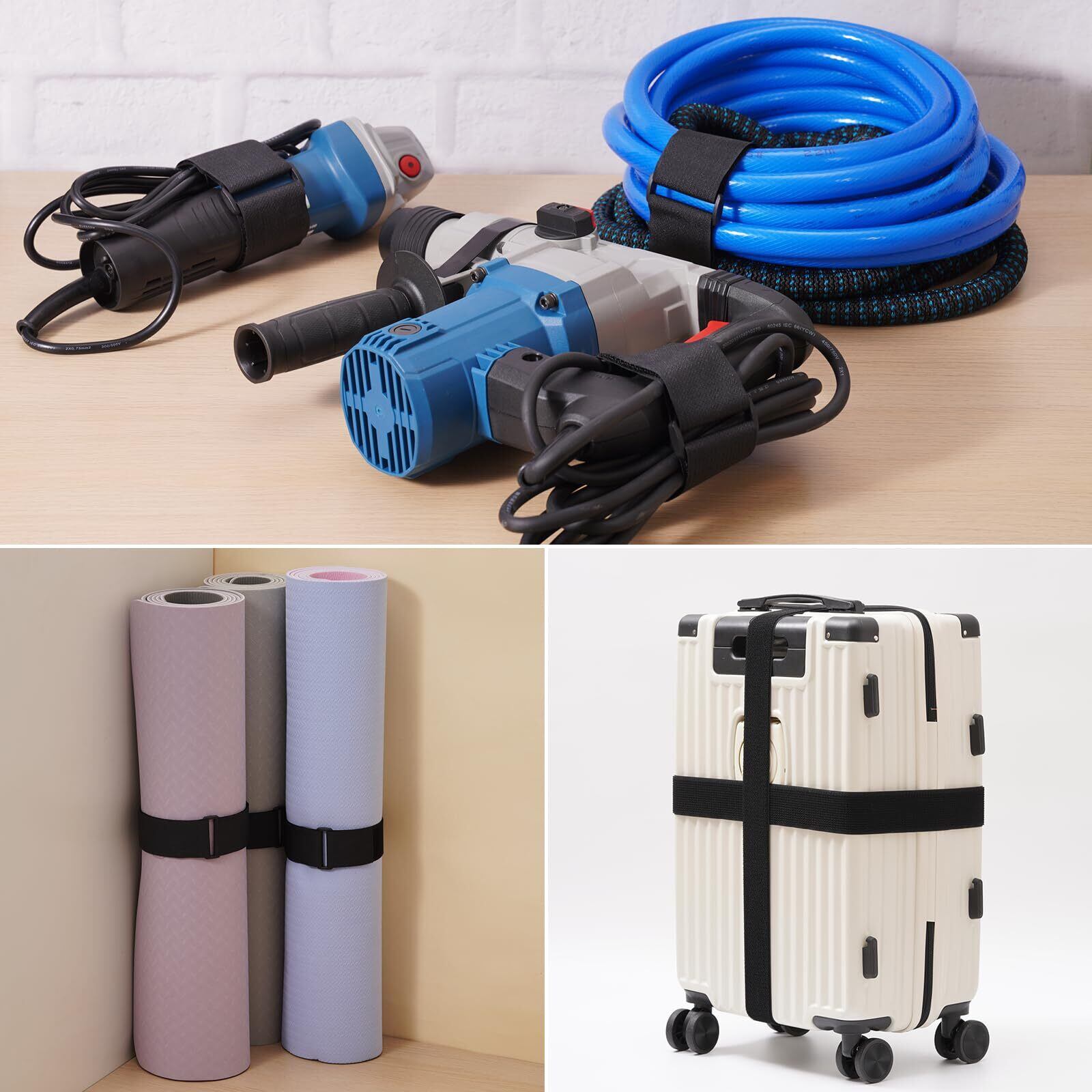 【幅広い用途】- 自由に長さを調整できるため、これらの調節可能なケーブルストラップはさまざまな用途に最適です。ケーブル、ホース、パイプ、スキー、傘、荷物、MOLLEシステム、スポーツ用品、キャンプ用具、収納ソリューションなど、あらゆる種類のアイテムを整理するのに優れています。さらに、縫製やDIYプロジェクト、衣類の調整、手袋や靴の固定など、無限の創造的な用途にも最適です。家庭やオフィスでの整理整頓、屋内外の重い物の収納に関係なく、これらのストラップは完璧な解決策です。