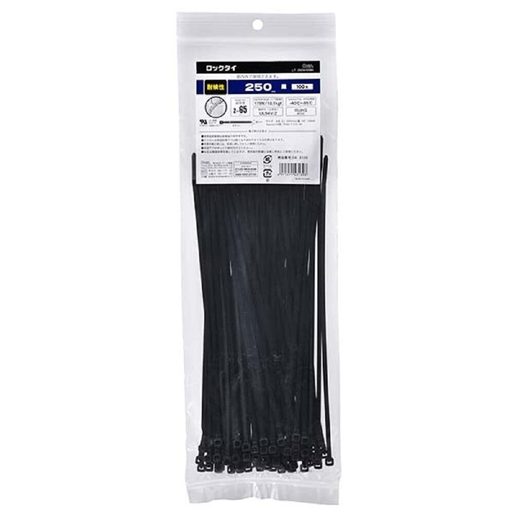 オーム電機 ロックタイ 250mm耐候・黒 100本入り LT-250W100BK