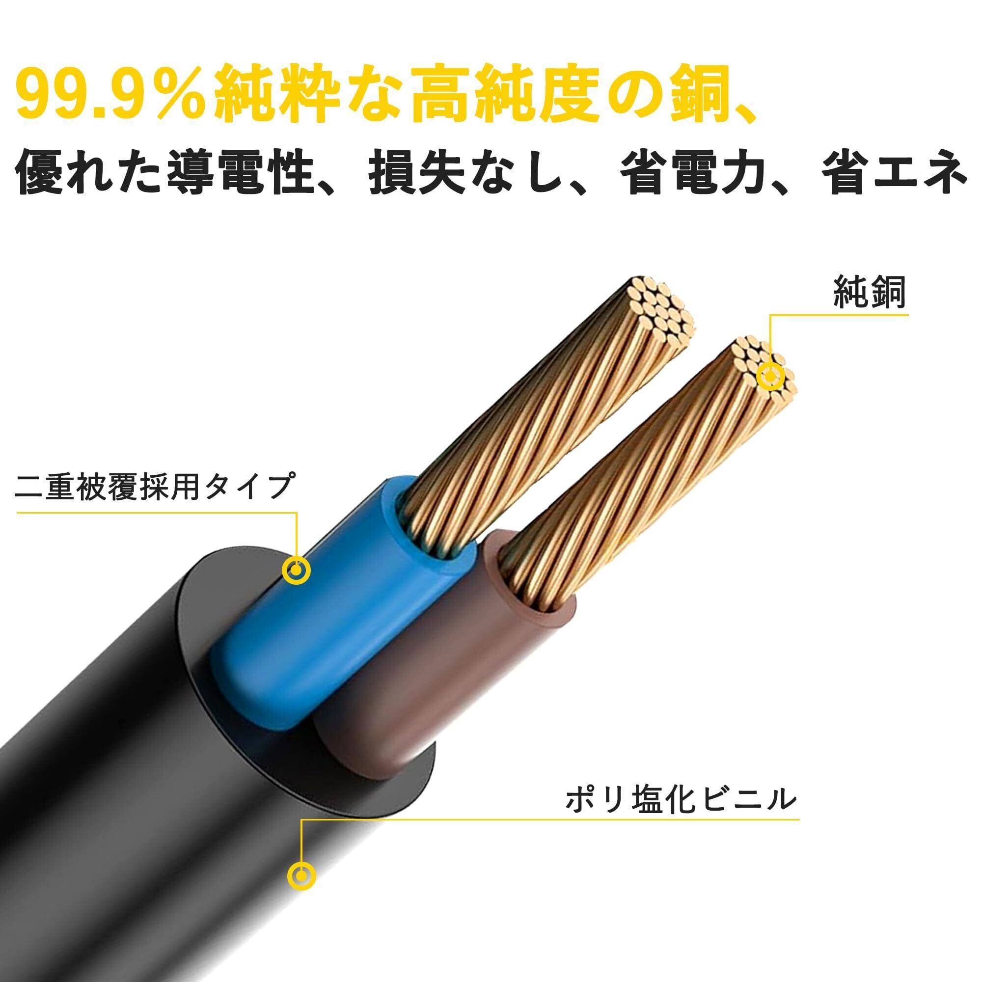 日本プラグ式の2芯型を採用しており、オスメスはともに一口仕様です。