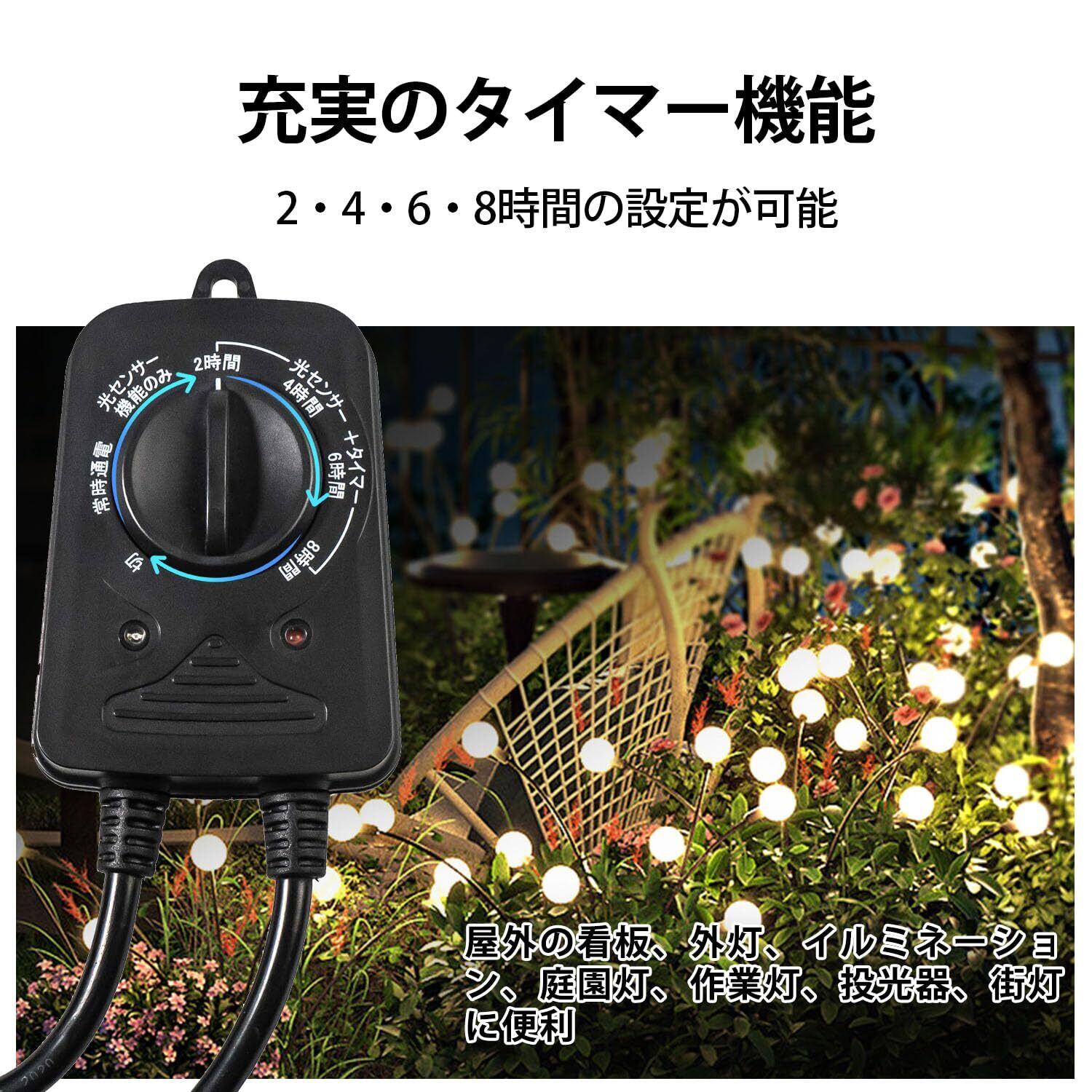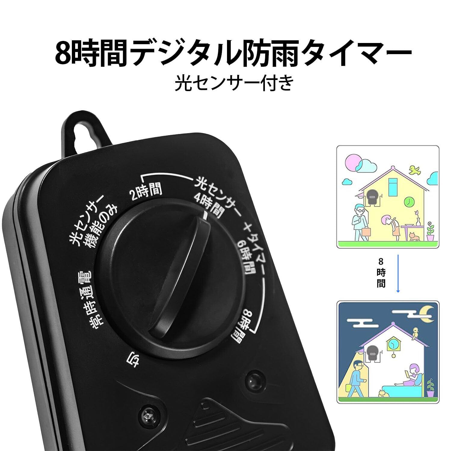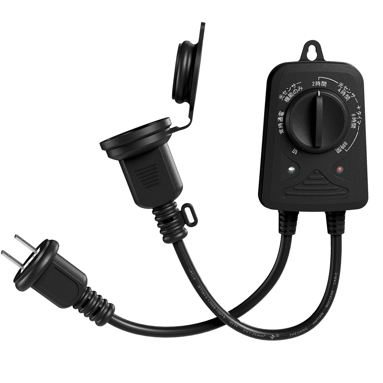 【屋外防水防雨型】タイマーコンセント光センサー内蔵 デジタルタイマー|2/4/6/8時間設定 消灯時間自由調整|自動点灯/消灯|毎日リピート対応|ガーデンライト/防犯灯/装飾照明用(防水キャップ付)