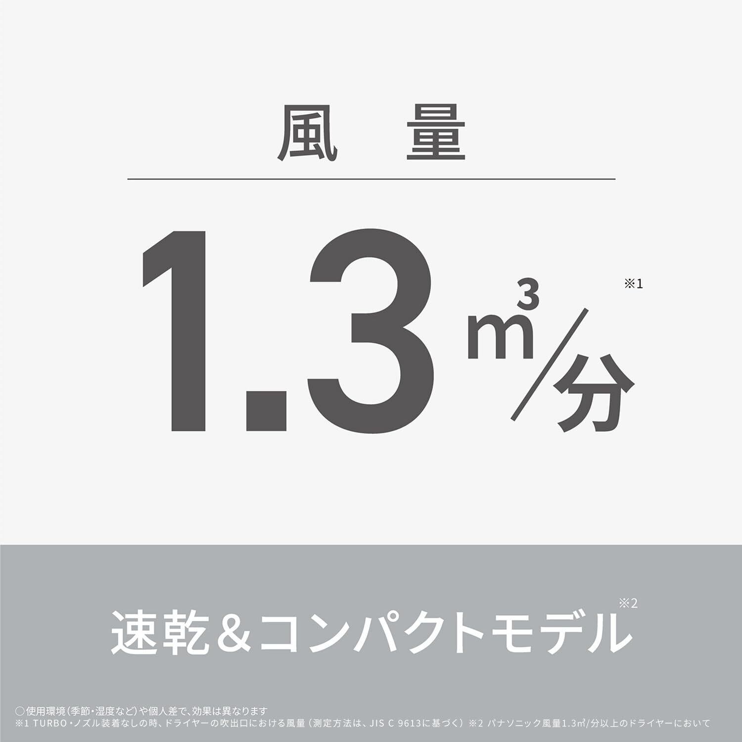 ●コンパクトでも風量1.3㎥/分で、パワフルドライ。