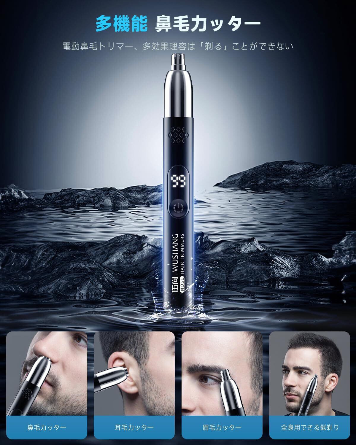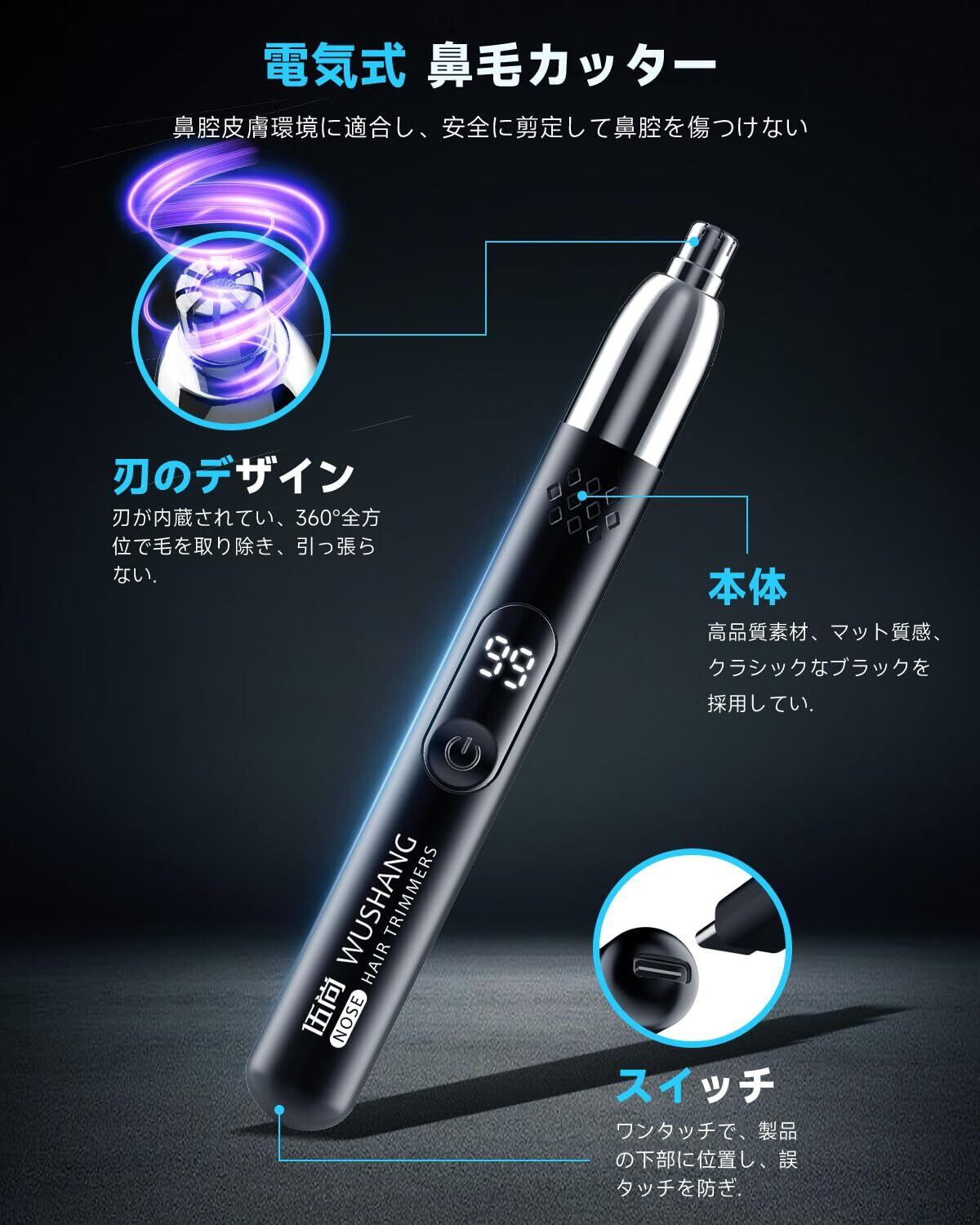 【特別価格】【小型・1台3役・LCD電量表示】鼻毛カッター メンズ レディース エチケットカッター はな毛カッター USB充電式 はなげカッター 耳げカッター 眉 耳 鼻毛切り 水洗い可能 男女兼用 おしゃれ 持ち運び便利 プレゼント 日本語説明書付き(ブラック)