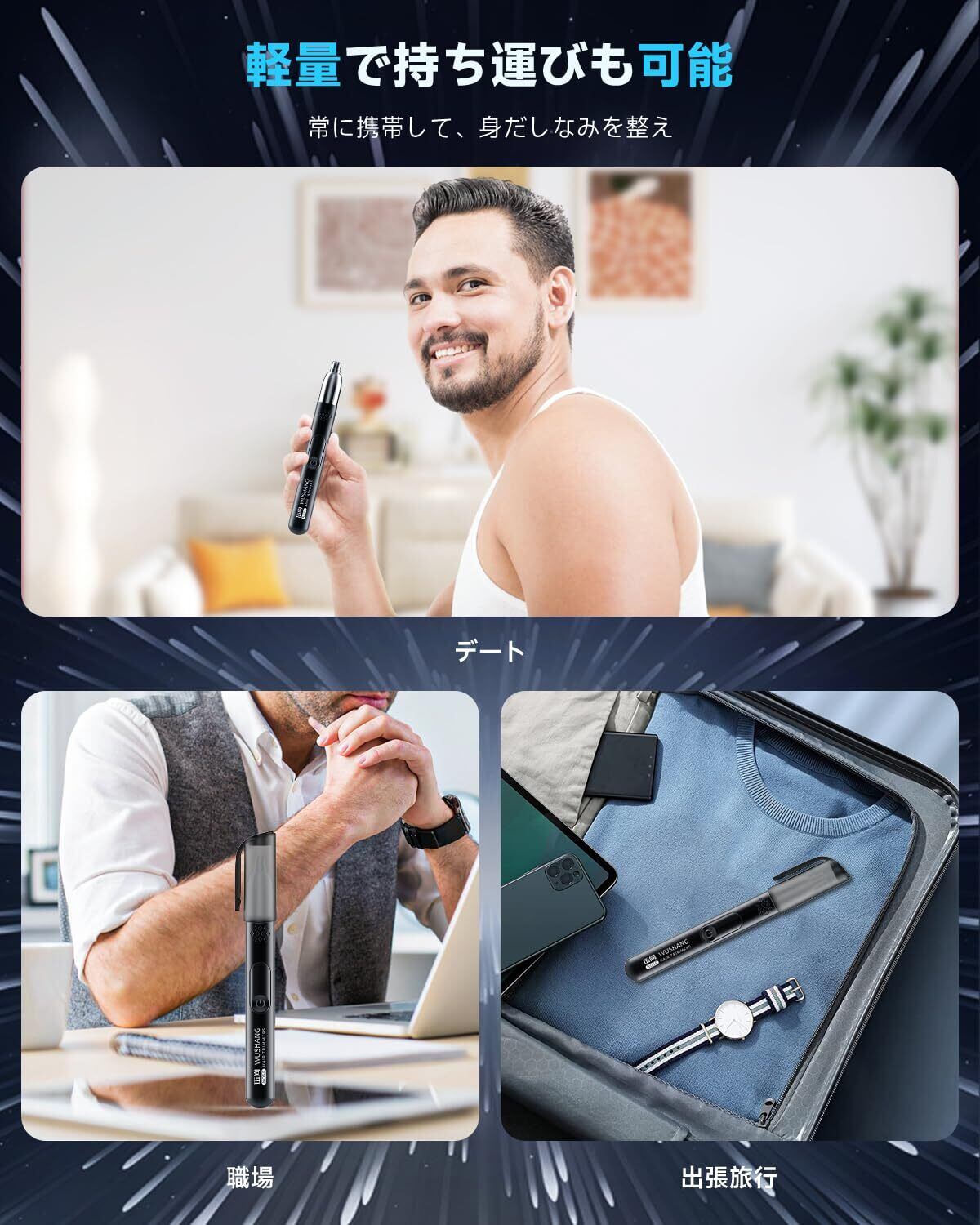 【IPX7防水仕様&持ち運びやすい】電動鼻毛切りはIPX7防水仕様で、安心して水洗いができます(底部の充電ポートを除く)。鼻毛切りの先端は回転、外して直接にすすぐことができ、いつでも清潔に保つことができます(本体は水洗いできますが、水に浸さないでください)。付属のusb ケーブルでかんたんに充電することができます。いつでもどこでもお手軽に充電でき。家族や旅行に適した、静かで効率的で耐久性があります。