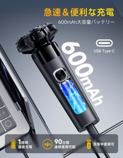【高速回転モーターと低騒音設計】強力な高速回転モーターにより、剃る速度が速く、効率的に剃ることができます。また、低騒音設計により、静かな使用感を実現。朝の忙しい時間帯でも、周りに気を使うことなく快適に使用できます。
