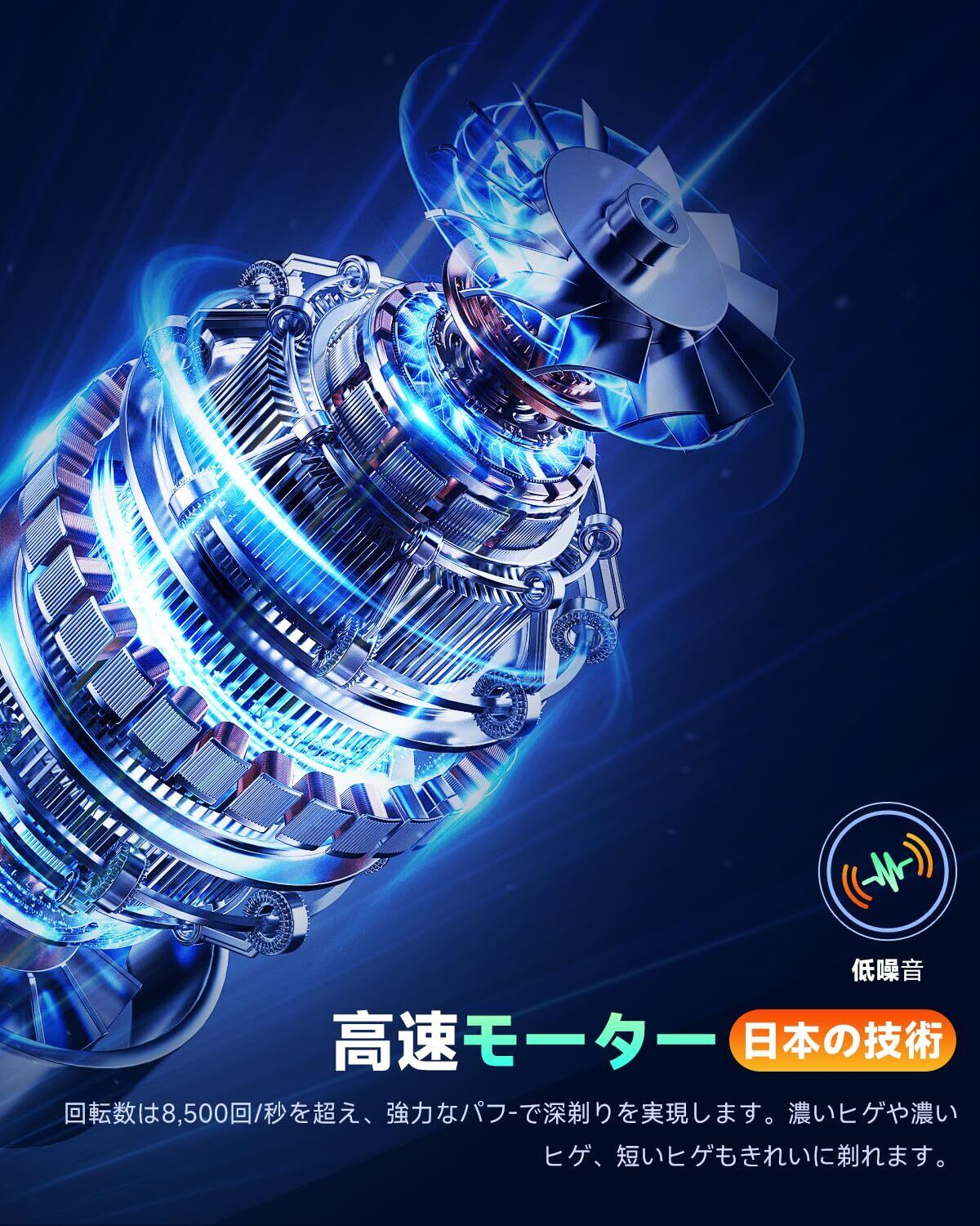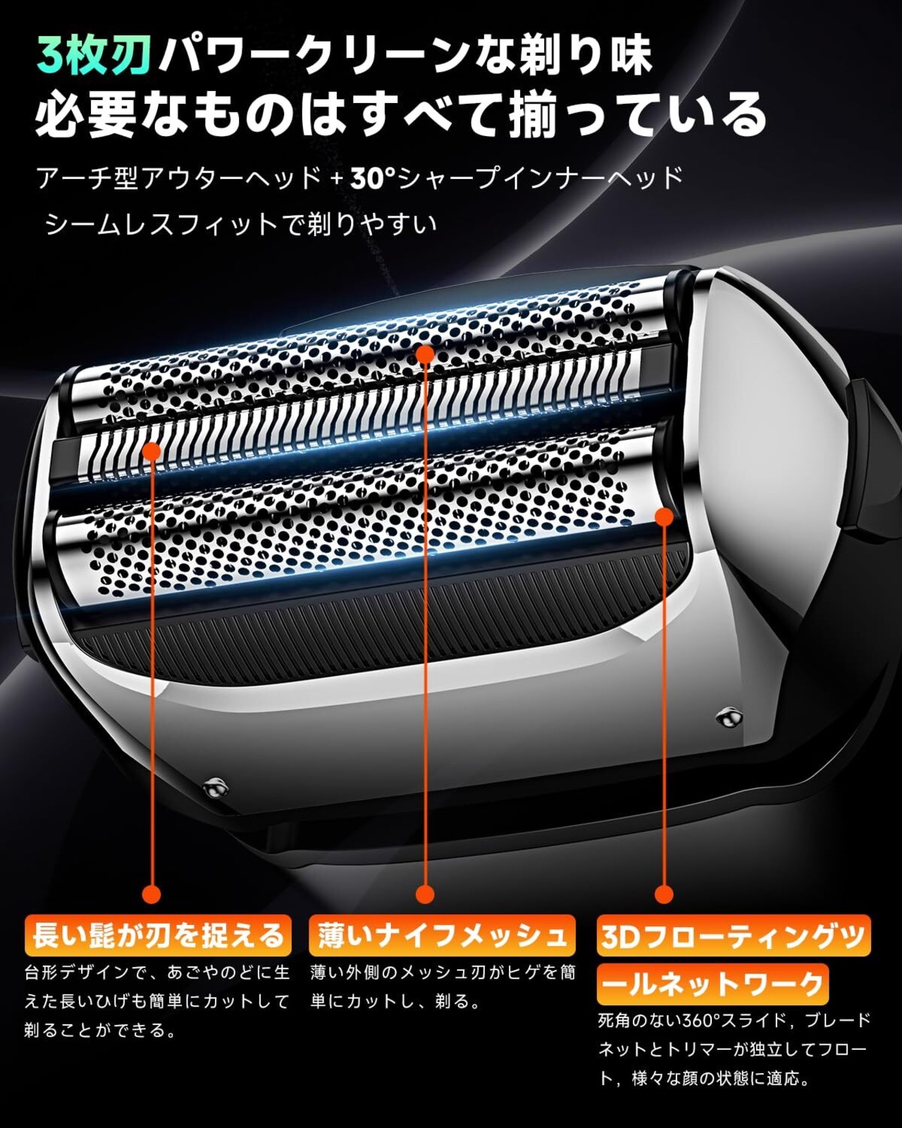 【快適なメッシュ刃先と高出力モーター】高精度のメッシュ刃先を採用し、約 1 分間に 15,000 回の動作をする線形モーターと組み合わせて、滑らかで効率的な剃り心地を提供します。たとえどんなに硬く太いひげでも瞬時に切り落とすことができます。また、刃先の耐久性も優れており、長期間使用しても鋭利な状態を維持し、肌にフィットしたディープシェービングを実現する電動シェーバーになっています。
