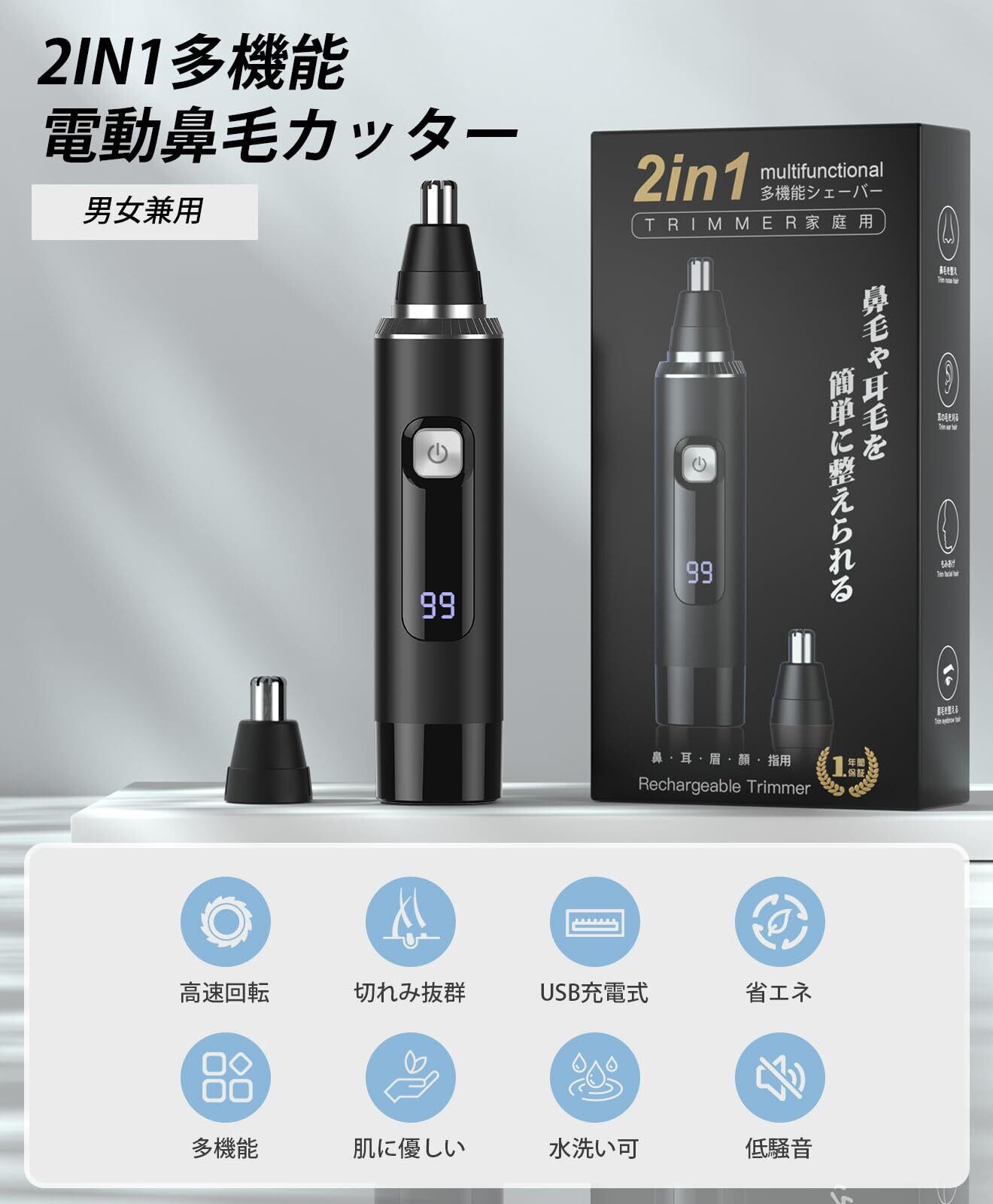 【2025新登場&LCD画面】鼻毛カッター メンズ 替刃付き USB充電式 LCD画面 1台多役 エチケットカッター 電動 鼻毛切り 耳毛カッター はな毛カッター 男性 電動シェーバー 低騒音 水洗い可能 小型 持ち運び便利 男女兼用 日本語説明書 (ブラック)