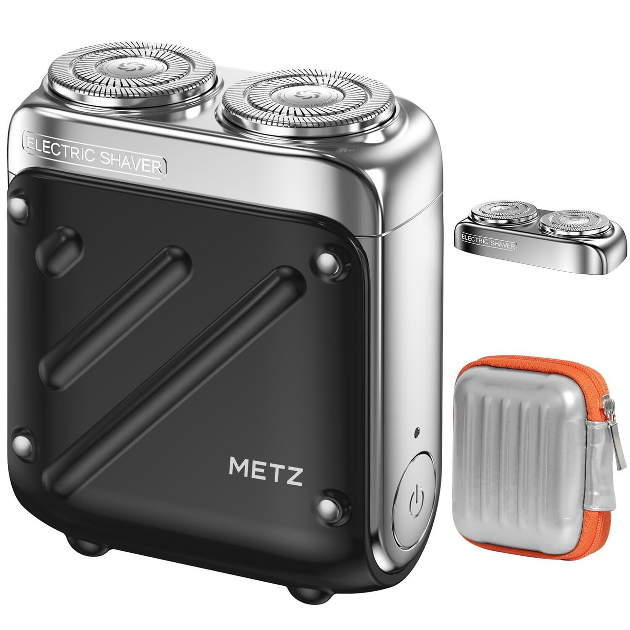 メッツ 【替刃付き】 シェーバー ひげそり 電動シェーバー メンズ 電気 小型 回転式 髭剃り コンパクト 軽量 持ち運び便利 乾湿両用 IPX7防水 収納ケース付き type-c充電式 出張 旅行 プレゼント (ブラック)