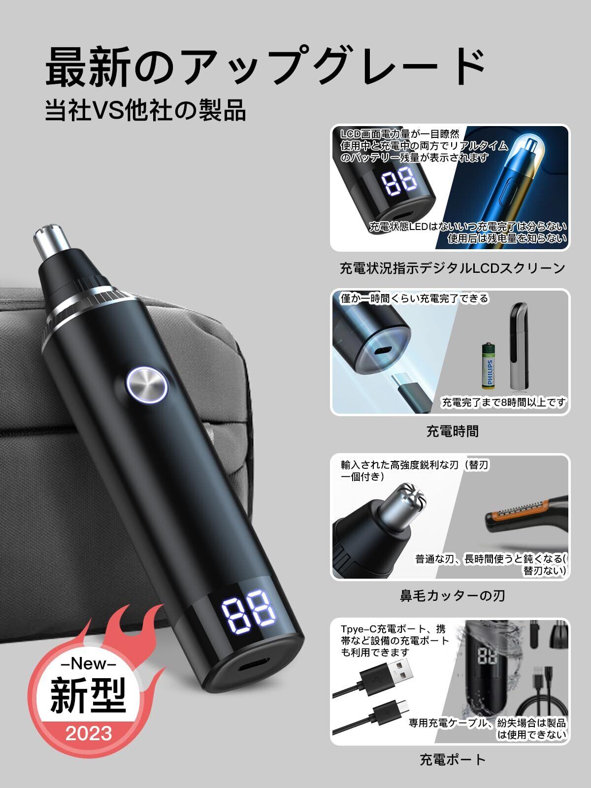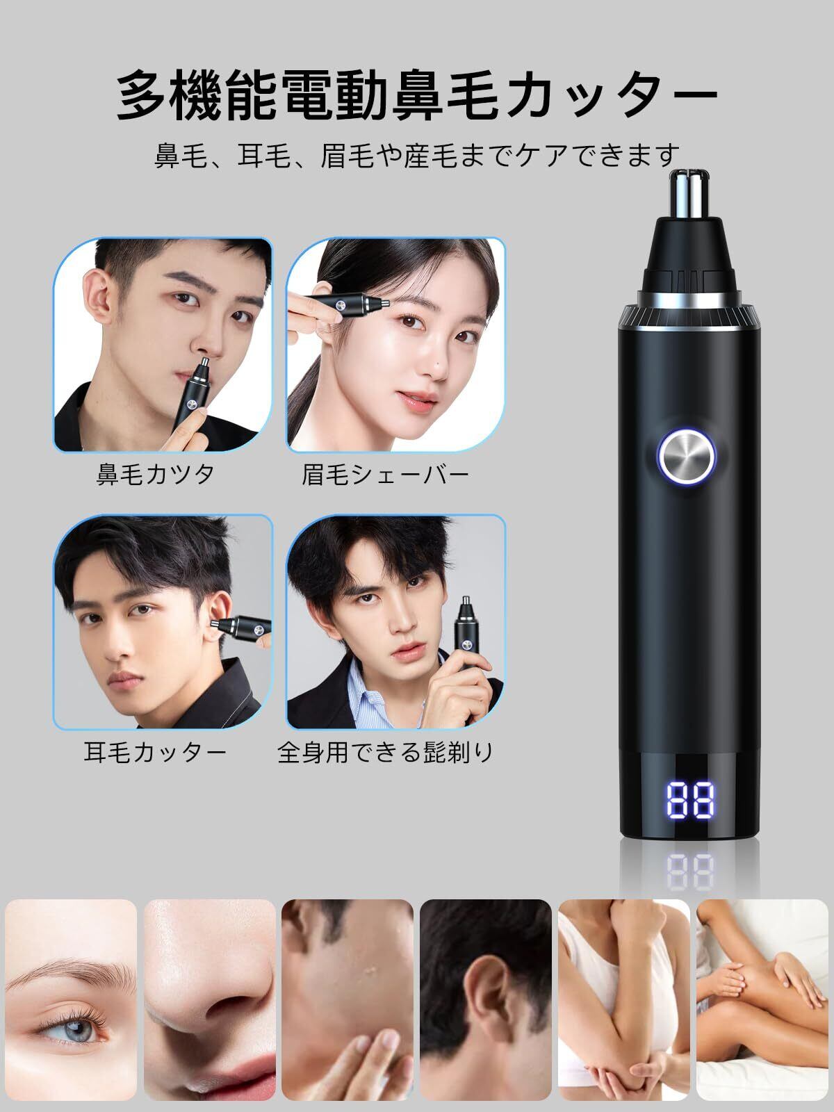 【新着商品】【新登場&LCD画面】鼻毛カッター メンズ 2025革新 USB充電式 LCD画面 1台多役 エチケットカッター 電動 鼻毛切り 耳毛カッター はな毛カッター 男性 電動シェーバー 低騒音 水洗い可能 小型 持ち運び便利 男女兼用 日本語説明書 (ブラック)