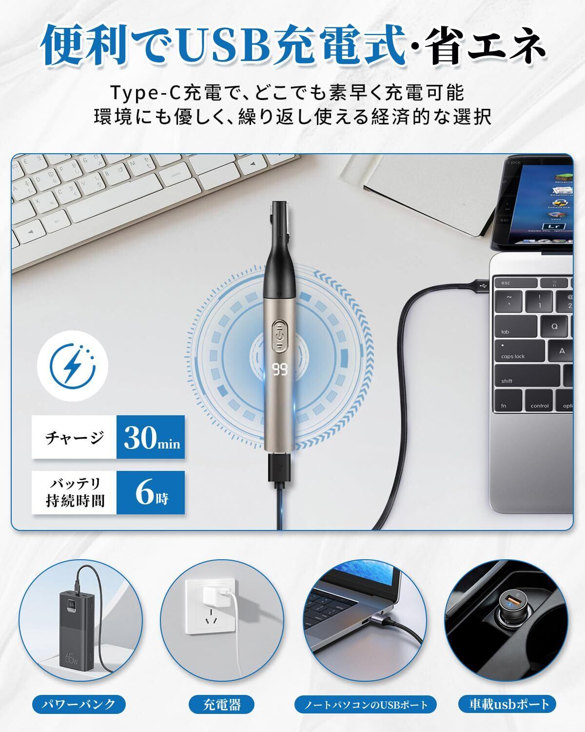 【LCD画面 & USB充電式電動シェーバー】デジタルLCDスクリーンを搭載したので、いつでも電力残量を把握することができ、途中で停電する心配がなく、使用体験をアップします。USB充電ポートの独自の設計を使い、過電圧、過充電、短絡を防止し、安全性を向上させる同時に、充電速度を大幅に向上し、満タン充電はわずか30分です。
