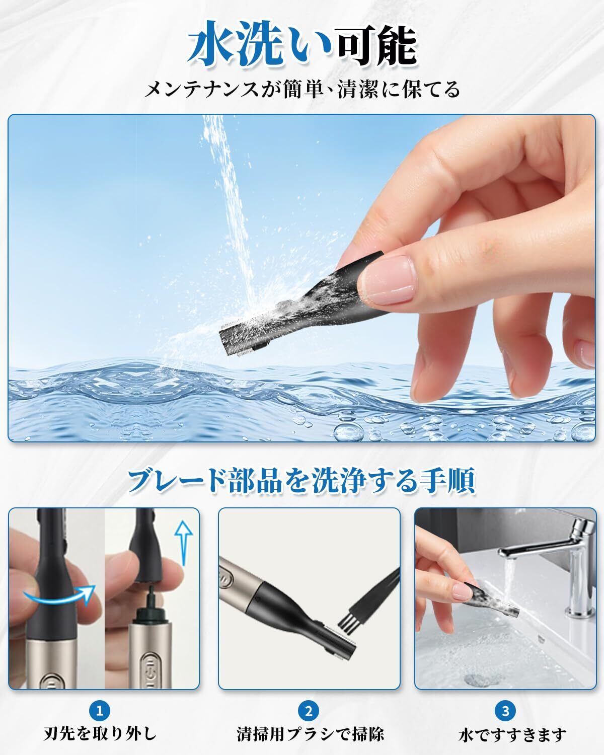 【お手入れ簡単、1年間安心サービス顔そり】眉毛そり メンズ本体は便利な交換式なので、使用後はヘッドを外して直接水洗いでお手入れできます。 眉毛整える長期間の連続使用には、クリーニングブラシで皮脂などの汚れや刃に付着した毛を水で洗い流し、清潔な状態で使い続けることができます。