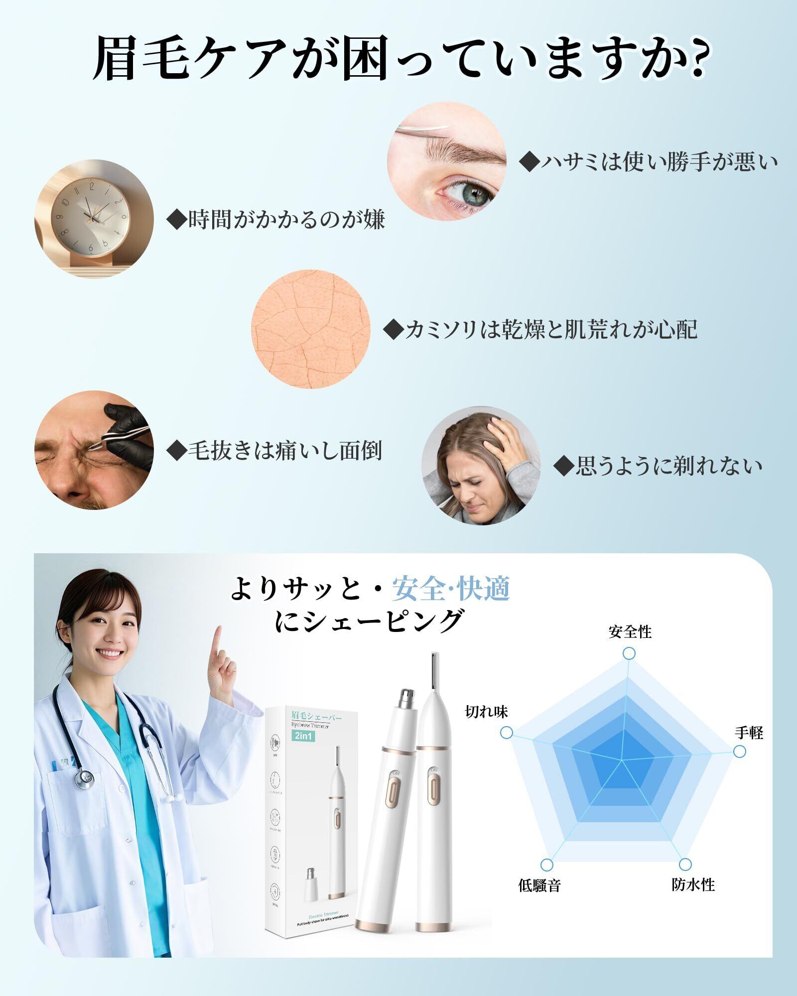特徴 2in1多機能, 低刺激性, 充電式, 静音設計
