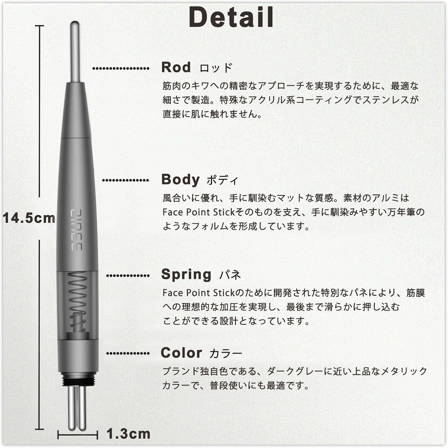 ZIREE フェイス ツボ押し棒 ポインター バネ式 美顔器 コリほぐし 筋膜リリース フェイスライン クマ 目元ケア 表情筋 リフトアップ 静音設計 フェイス 耳ツボ押し棒 男女兼用 収納袋付 (グレー)