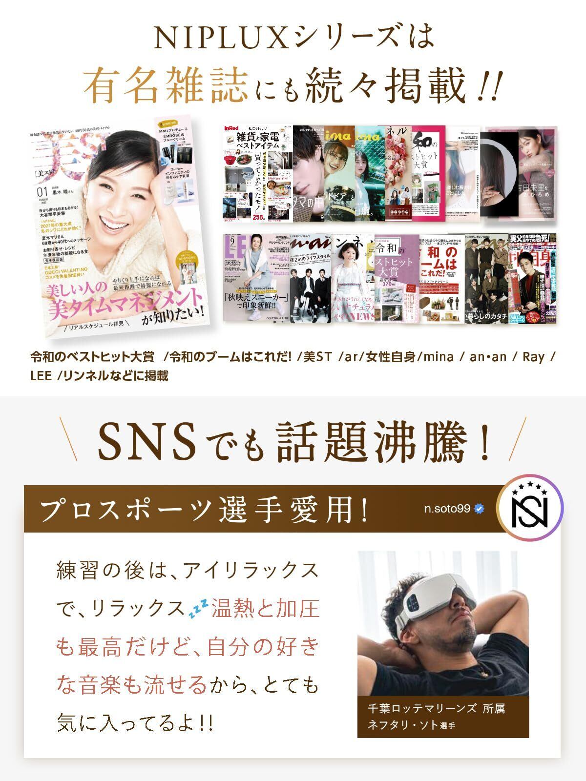NIPLUX EYE RELAX S【新登場】 アイウォーマー アイマスク ホットアイマスク 充電式 目元エステ アイケア Bluetooth機能 音楽 ニップラックス ブラック