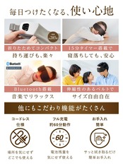 【15分タイマー・Bluetooth搭載】つけたまま寝てしまっても安心のタイマー設定。使用後から15分で自動的に電源がオフに切り替わります。動作音は48㏈以下から42.7㏈以下に改善!おやすみ中でも安心快適に使用できます。EYE RELAX SはBluetoothを搭載。音楽を流すのはもちろん、無音でも使えるのでシーンに合わせてご使用いただけます。