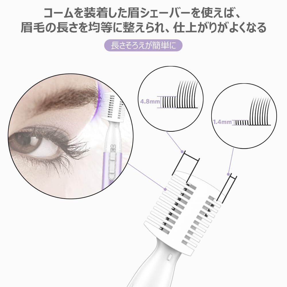 眉毛シェーバー 眉毛カッター フェイスシェーバー レディースシェーバー 女性 電動シェーバー まゆげそり 産毛 顔そり長さ調整眉用コーム付き 替刃付き 乾電池式 日本語取扱説明書