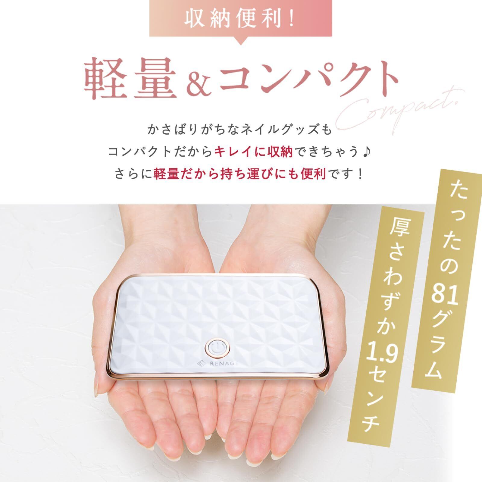 ジェルネイル ネイルライト UVライト レジン LEDライト RENAGE コンパクト 硬化ライト 折りたたみ式 USB給電タイプ タイマー機能 全ジェル対応 ネイルドライヤー 2Wayタイプ フルカラー取扱説明書