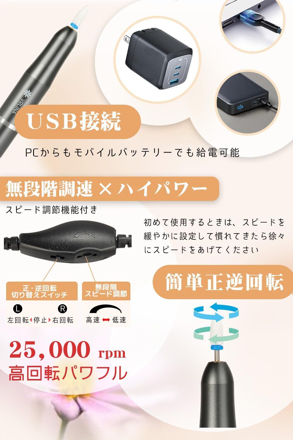 【【最大25000rpm✕無段階調整】最大25000rpm パワフルで無段階調整。1分間の回転数が~25000回の間で無段階調節が可能で、削り過ぎを抑え少しずつ削っても良し、効率的にネイルオフする事も可能です!