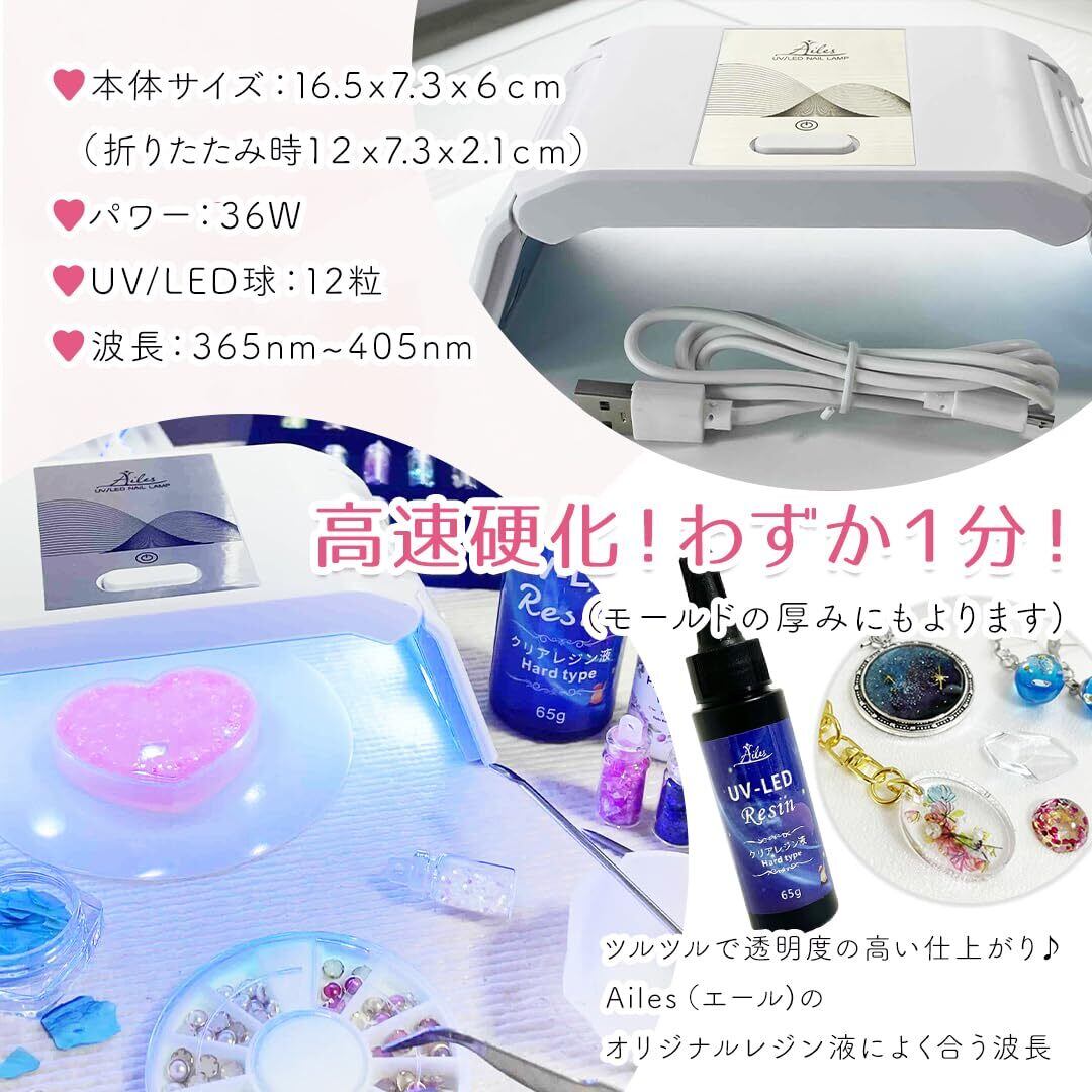 【限定セール】[Ailes(エール)] UVライト レジン ライト UV/LED ジェルネイルライト 折りたたみ式 コンパクト USB式