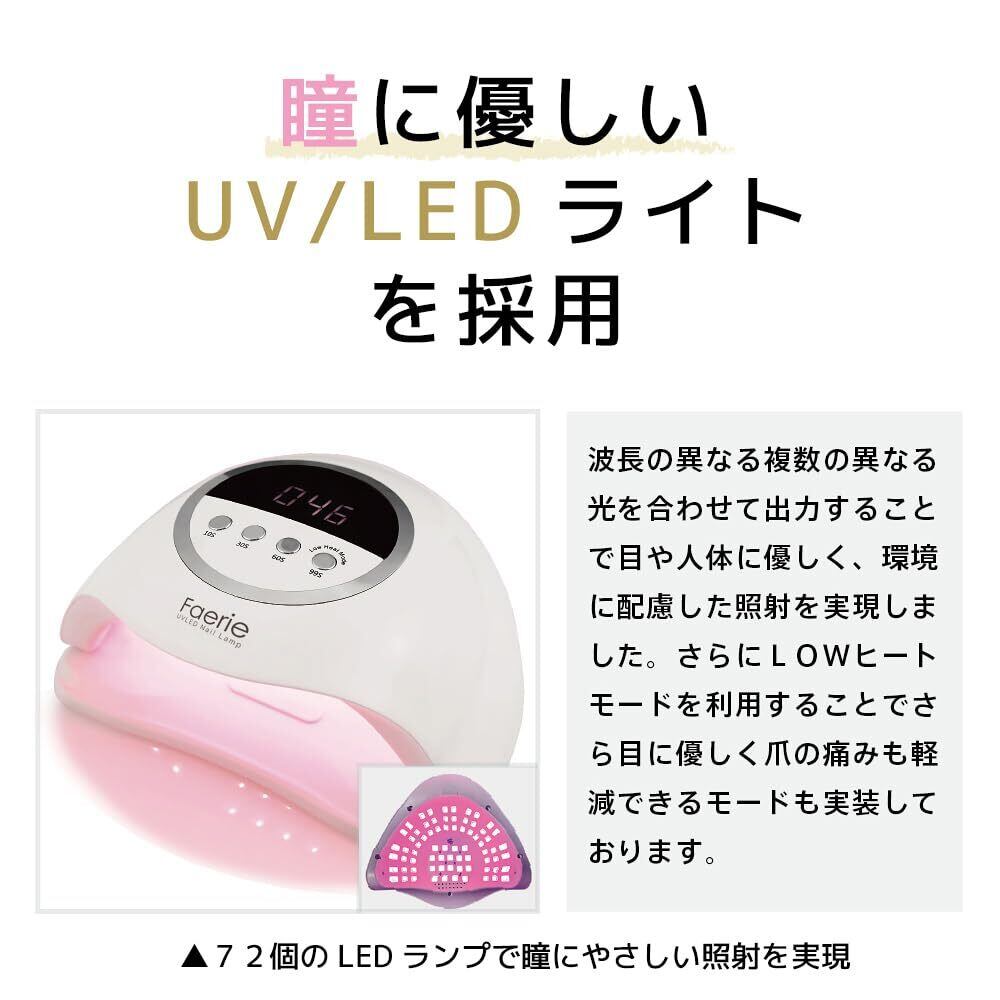 Faerie ジェルネイル ライト ネイルライト 320w 72LEDs UV+LEDライト 低ヒート機能 全ジェル対応 人感センサー付 ネイルドライヤー レジンライト 硬化用ライト 【UV+LED二重光源】 UV/LED兼用ライト 日本語説明書 & 12ヶ月付