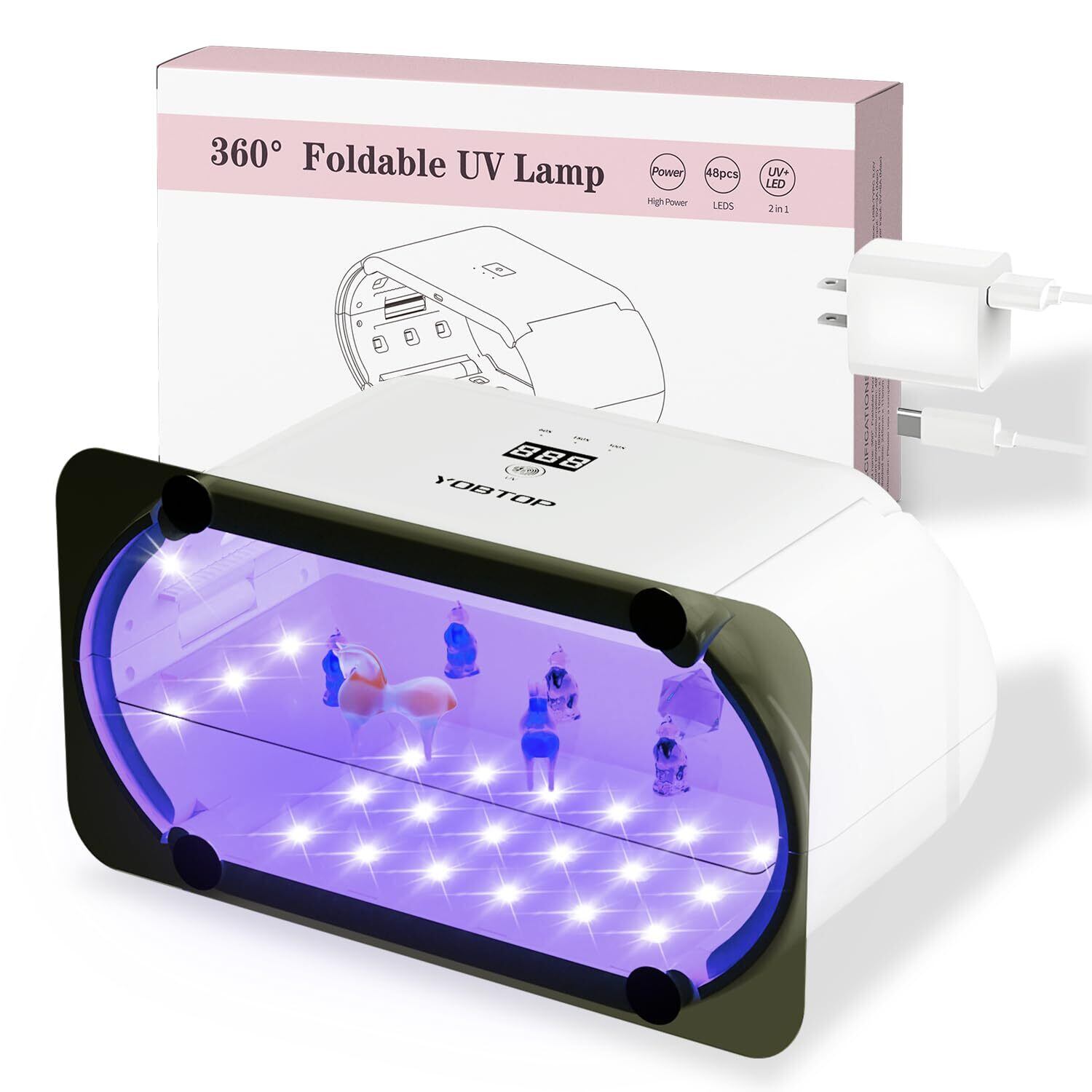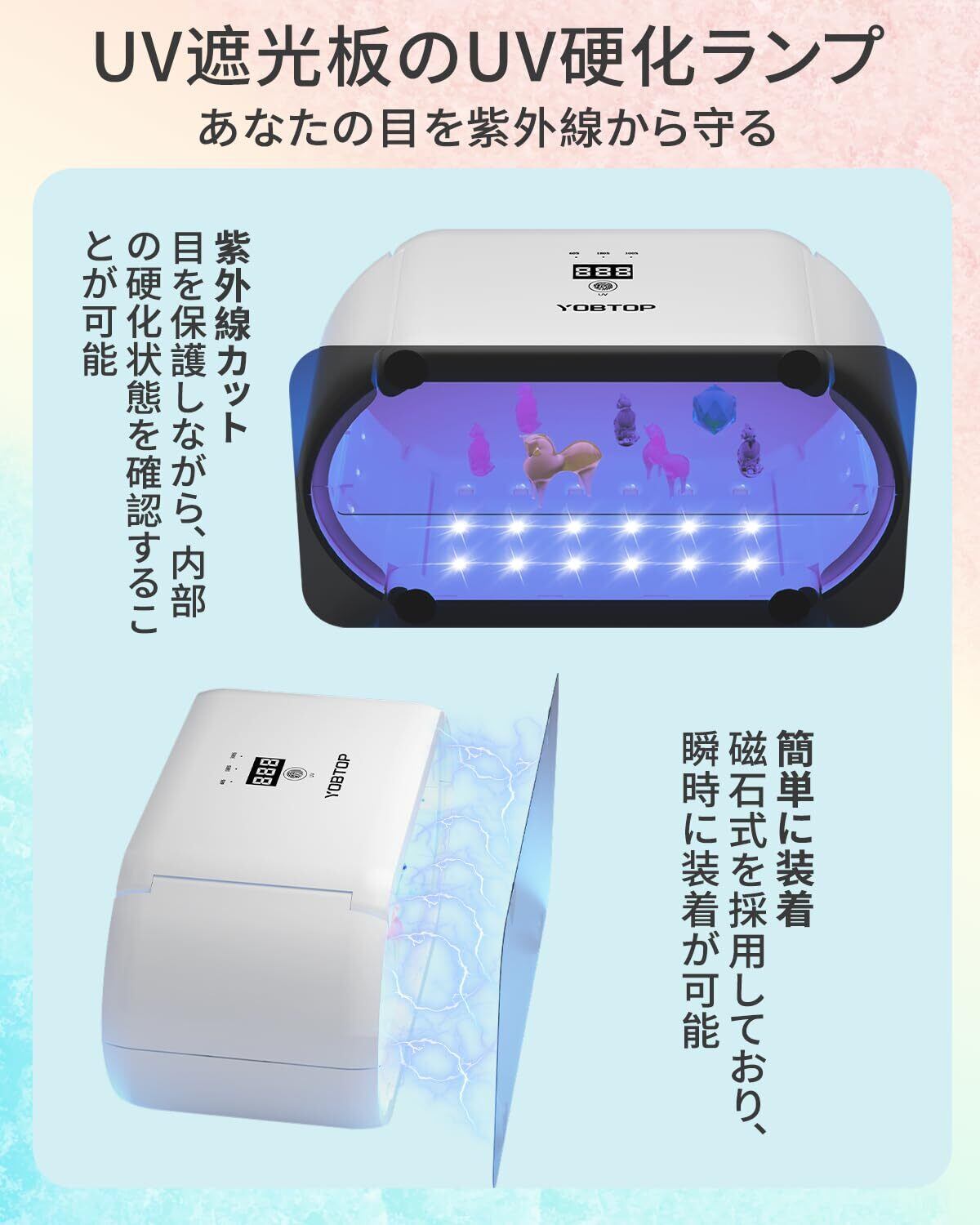 YOBTOP 【最新2025】 UVライト レジン用 48W 両面照射 48個LED搭載 UV遮光板付き 4段階時間調節 (60秒・180秒・300秒・600秒) デジタル表示 折り畳み式 分離式 uvランプ UVカット 2in1 DIYクラフト ジュエリー作り
