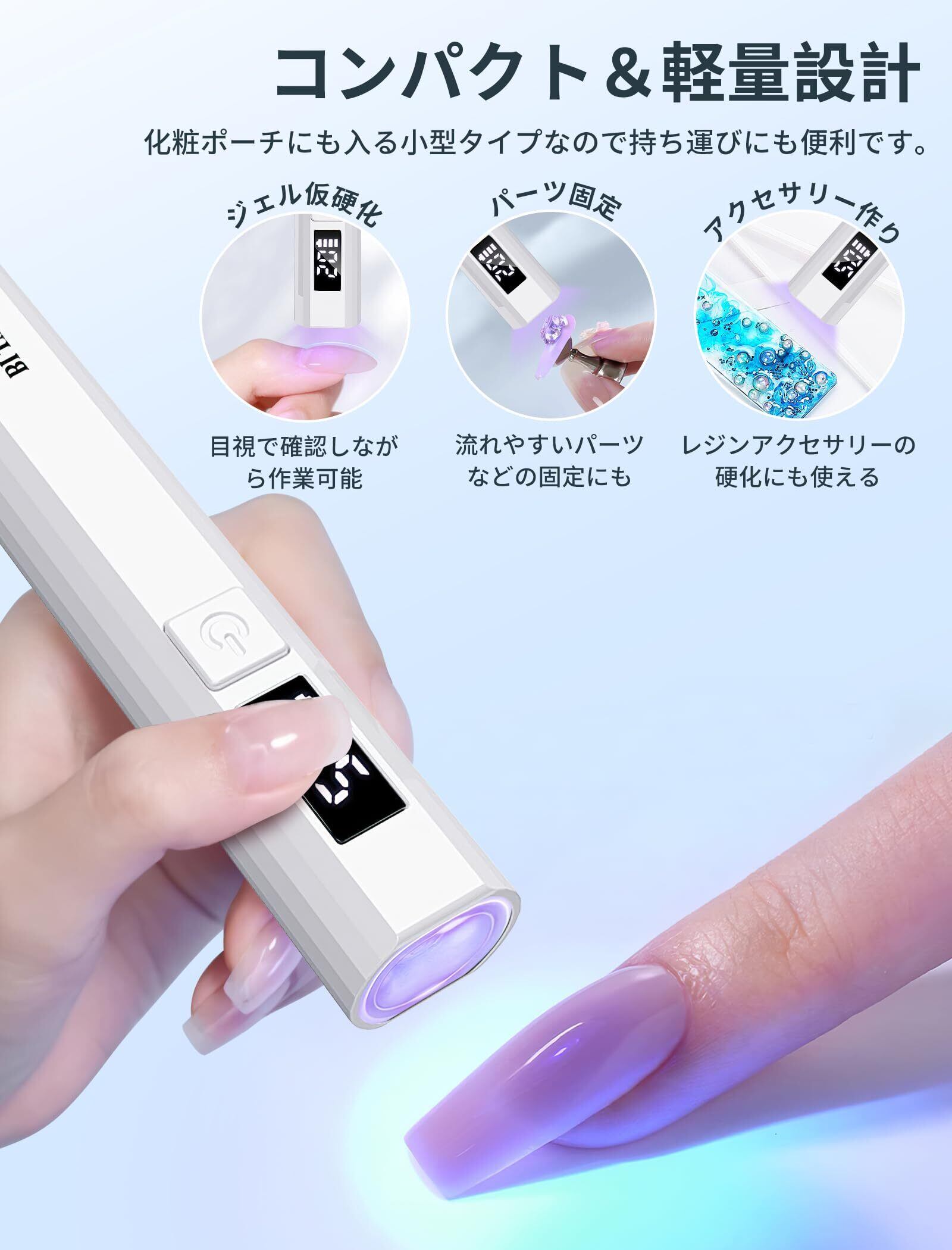 【2025最新】ネイルライト ハンディ USB充電式 ペン型 多機能 LEDディスプレイ 電量表示ディスプレイ カウントダウン秒数表示 uvライト レジン用 硬化ライト 速乾 2階段タイマー 手足両用 プロ&初心者用 ポータブル ミニネイルライト 持ち運び便利