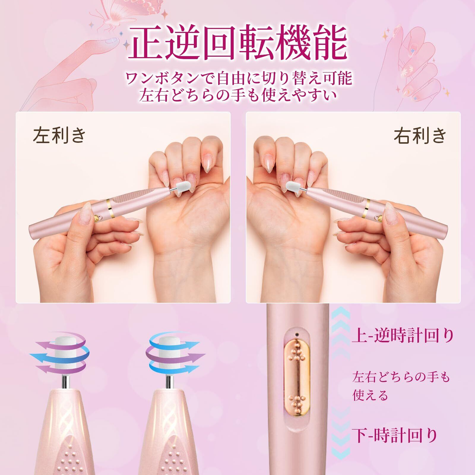 【最大15000 RPMまで!回転速二段階調節!】ネイルマシンの回転速が0-15000 RPMの範囲で調整でき、最低速度でも甘皮処理が可能なため、初心者でもケガをする恐れなく使用でるネイルマシンです。用途や利き手に応じて正逆転換を自在調節でき、左手右手の両方のネイルオフにぴったりです。※初心者は回転数を徐々に上げていく方がお勧めです。