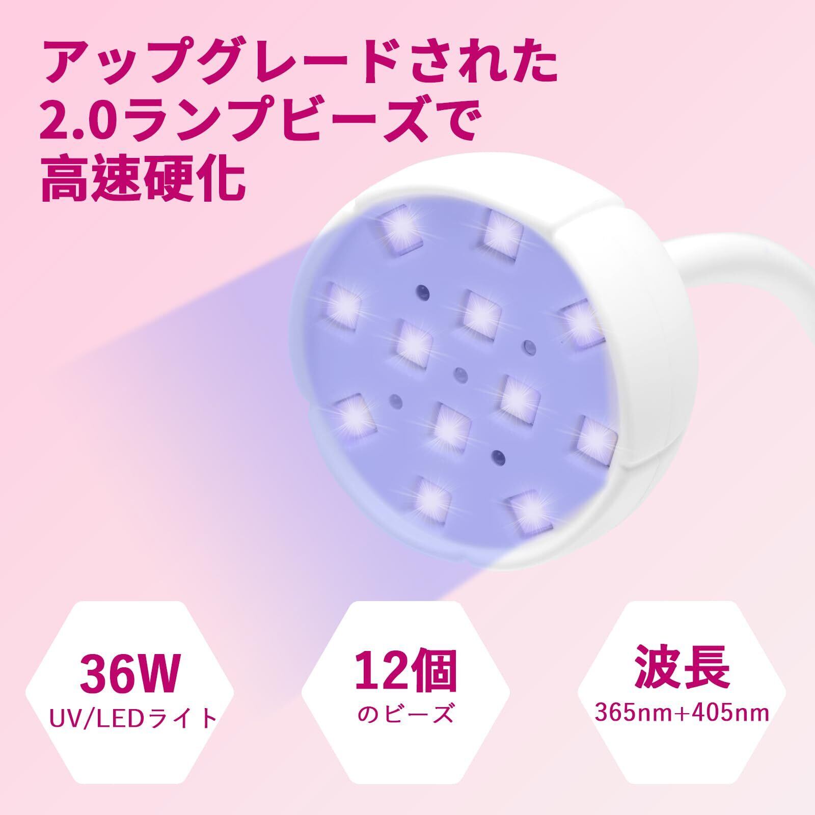 速乾性UVネイルライト: ledライト ネイルは、最新の12個 UV LED二重光源を備えており、波長(365nm+405nm)で、、硬化時間を短縮し、ネイルアート作成の効率を向上させる36Wの適切な光源を提供します。 すべてのジェルネイル、ジェルグルー、ジェルネイルポリッシュストリップ、ジェルネイルポリッシュステッカー、UVレジンに対応しますが、通常のマニキュアには対応していません。