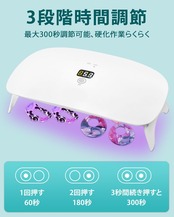 【2段階タイマー】uvライトには60秒、180秒の2段階タイマーが搭載されており、ニーズや好みに応じて選択することができます。スイッチをを毎回押すと、60秒、180秒硬化モードが切り替え、最長180秒をカスタマイズしたため、何度も操作を繰り返す必要はありません。