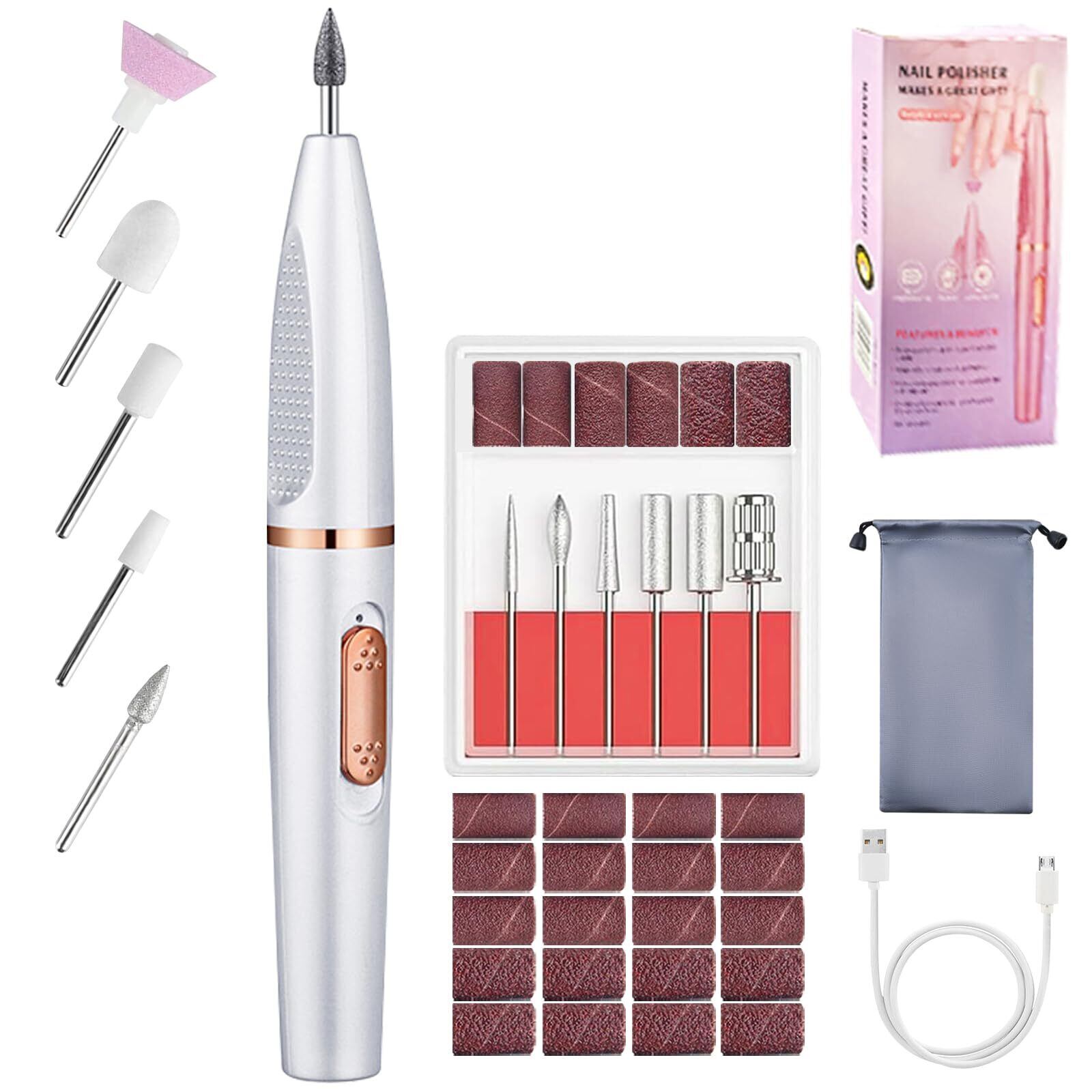 【新着商品】さえだ ネイルマシン ビット 電動ネイルマシン コードレス ネイルオフマシーン 甘皮処理 爪磨き ネイルケアセット ネイルマシン プロ用 初心者 ジェルネイル 専用ビット11個セット マニキュア対応 ネイルドリル 正逆回転 無段階変速 セルフオフ 自宅ネイルサロン用 (ホワイト)
