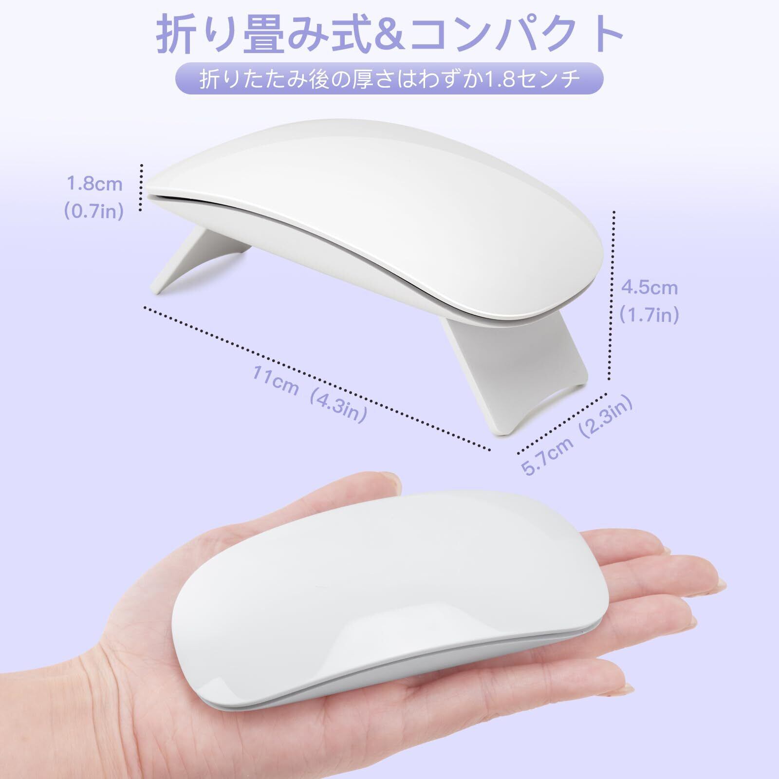 ポケットサイズのマウス型デザイン:このミニUVネイルランプはコンパクトで重量わずか80g。化粧ポーチやハンドバッグ、小さなポーチにもすっぽり収まるので、どこへでも気軽にお持ちいただけます。