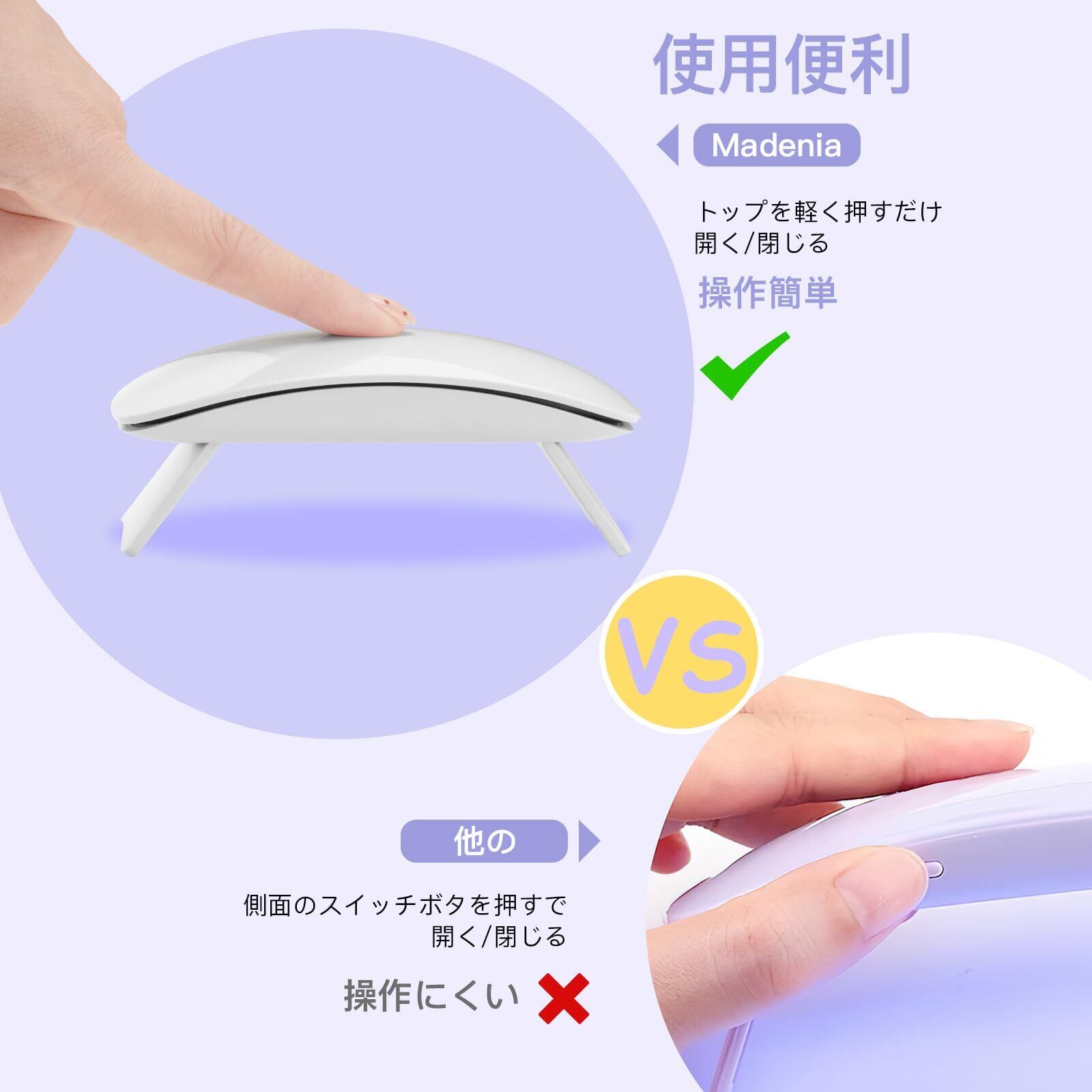 【新着商品】ネイルライト Madenia ミニUVネイルランプ 6W USB電動式 ポータブルLEDネイルドライヤー 60秒タイマー付き ジェルネイル初心者セット ホワイト