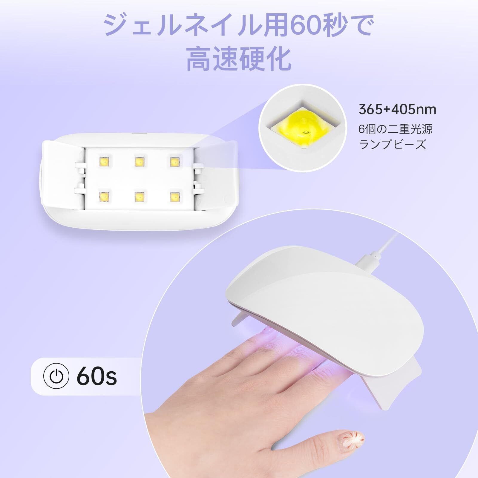 ネイルライト Madenia ミニUVネイルランプ 6W USB電動式 ポータブルLEDネイルドライヤー 60秒タイマー付き ジェルネイル初心者セット ホワイト