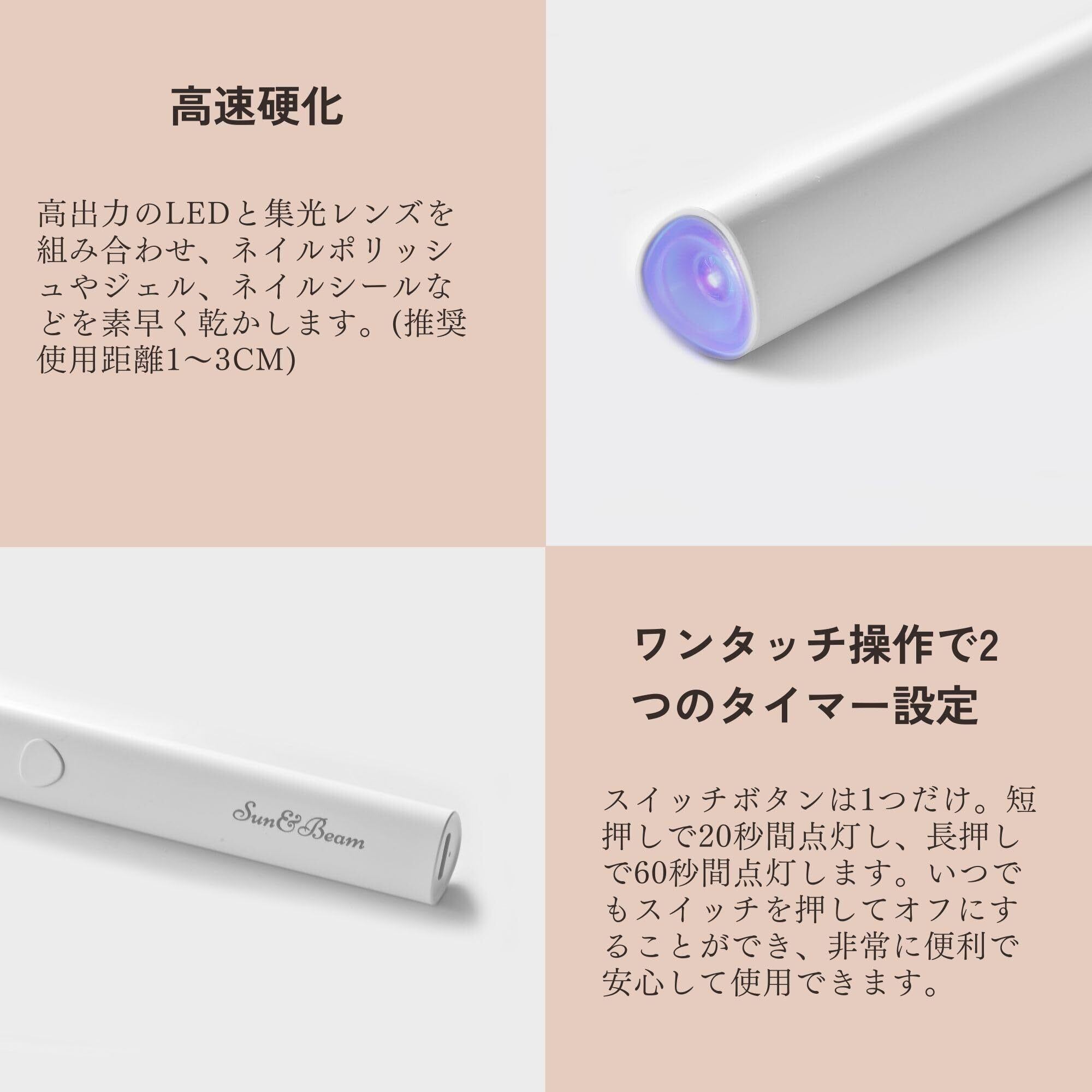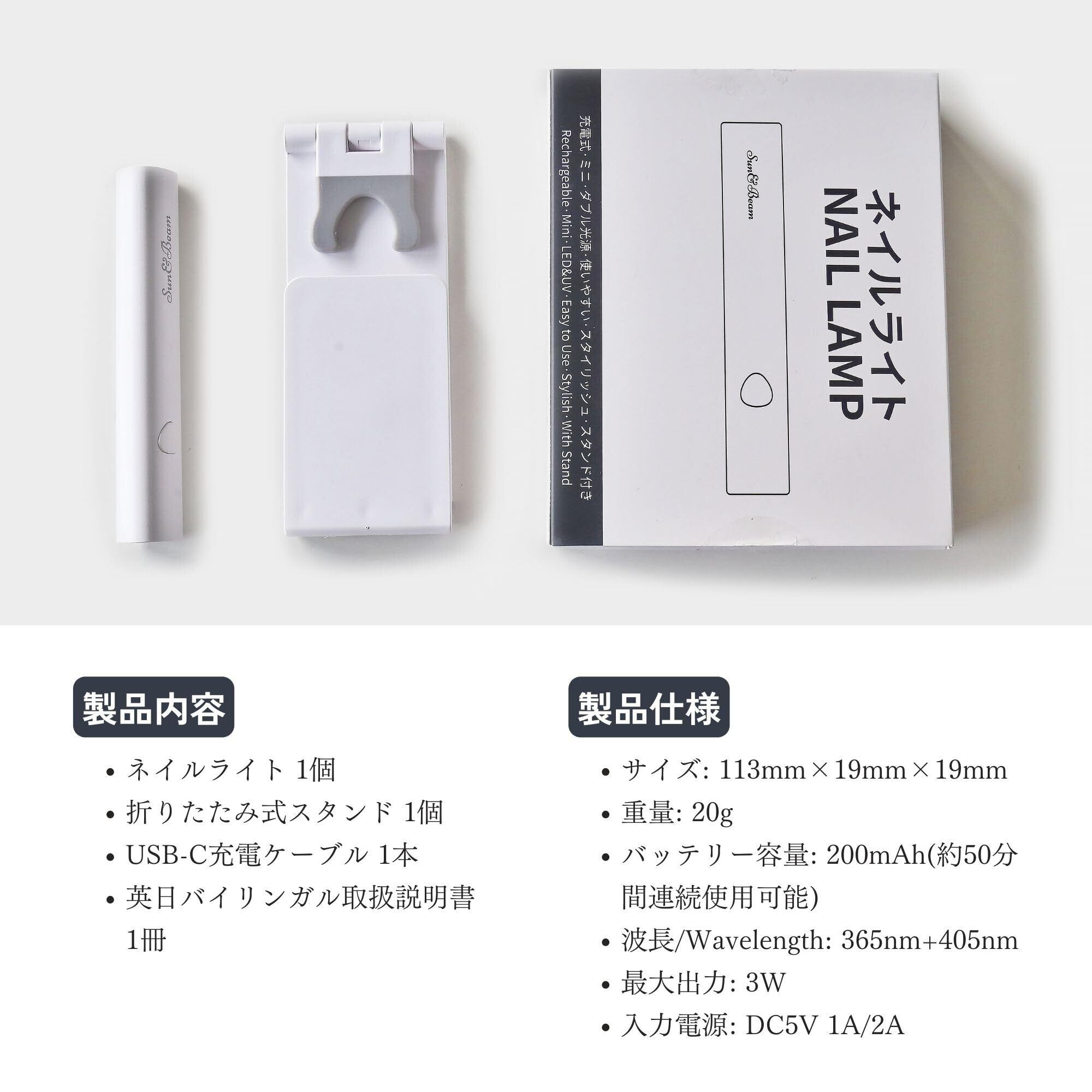 Sun&Beam Nails ジェルネイルライト 充電式速乾 LED & UVライト 携帯便利なデザイン セルフネイル向け 2階段タイマー機能付き レジン・トップコート対応(ホワイト-スタンド付き)