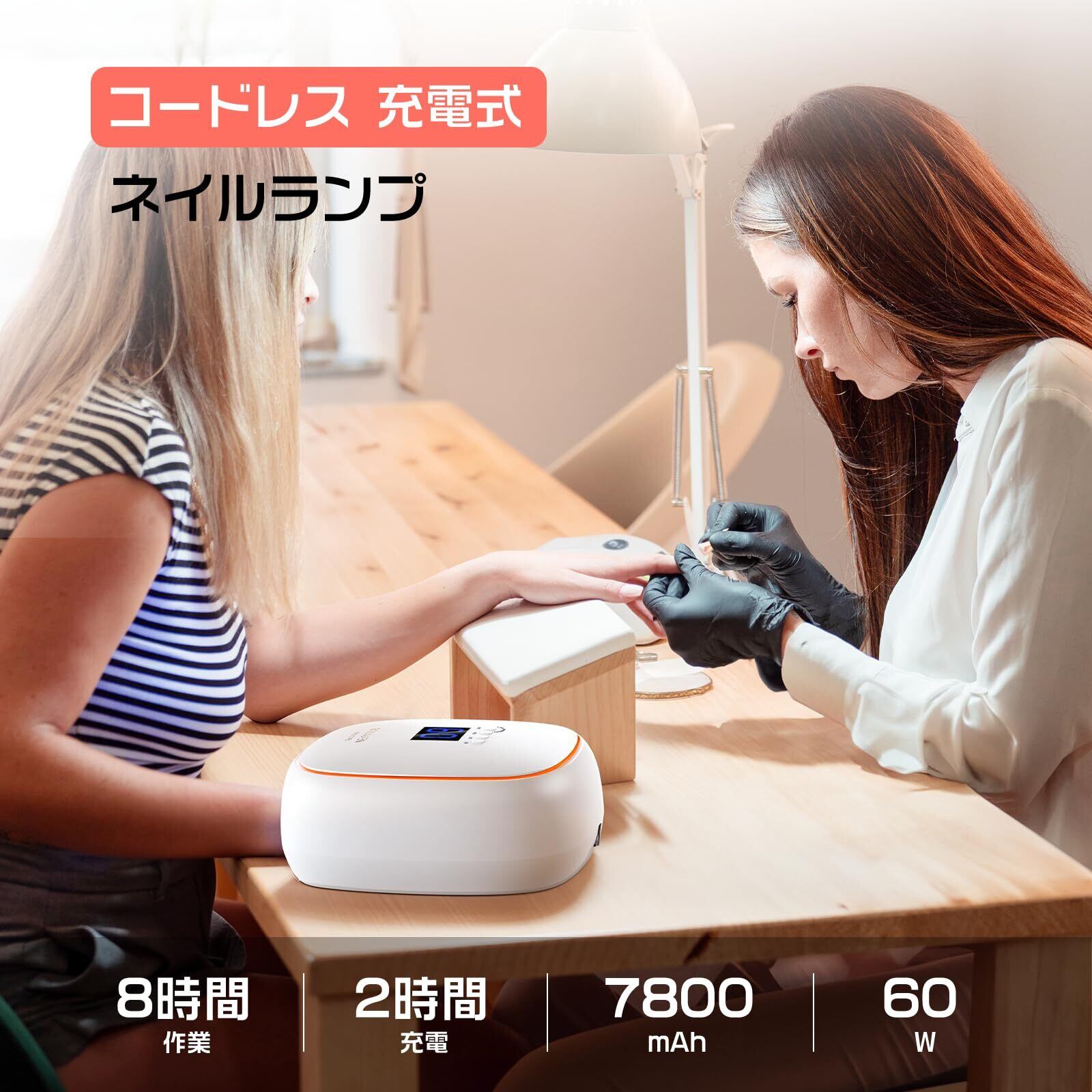 【プロ仕様の充電式ジェルネイルライト】7800mAhの大容量バッテリーを搭載し、コードレスネイルライトは7-8時間連続使用できます。25W急速充電で、1-2時間でフル充電できます。どこでも持ち運びができ、面倒な配線もなく、簡単に操作できます。