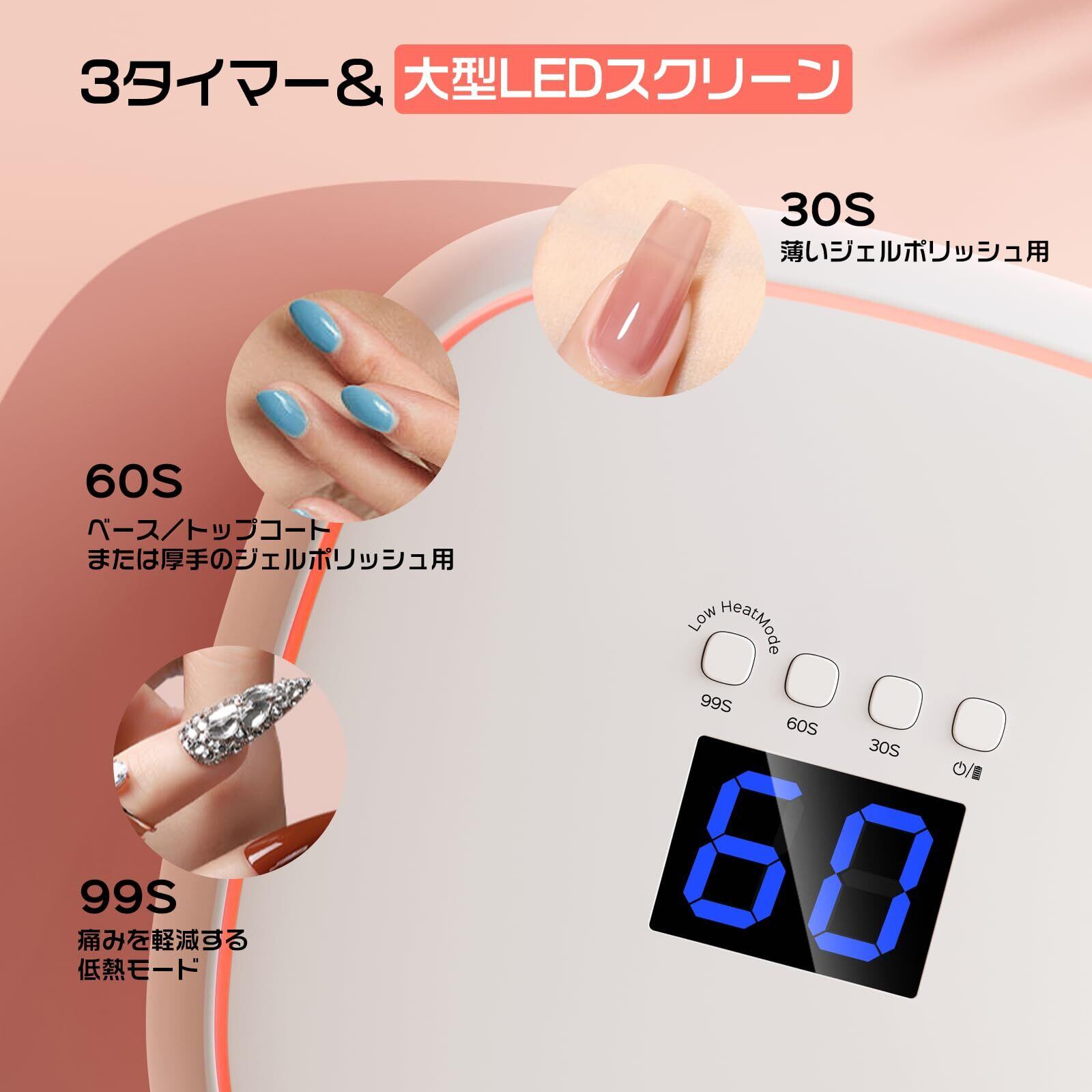 【自動センサー&3つのタイマー設定】赤外線自動センサー内蔵、手を入れると点灯、手を離すと消灯します。HALO 10 PROは大型LEDデジタルディスプレイを搭載し、30s/60s/99sの3つのタイマー設定が可能です。独自の99秒低熱モードは、敏感な爪に快適です。このモードでは、時間と共にパワーが強くなり、ゆっくりと熱を放出して、ジェル硬化時の痛みから爪を守ります。