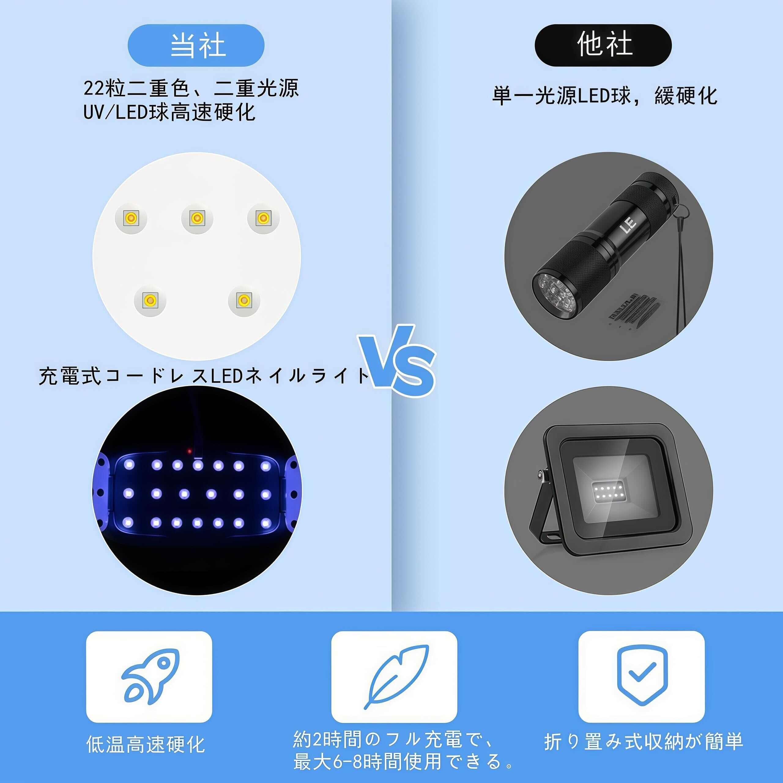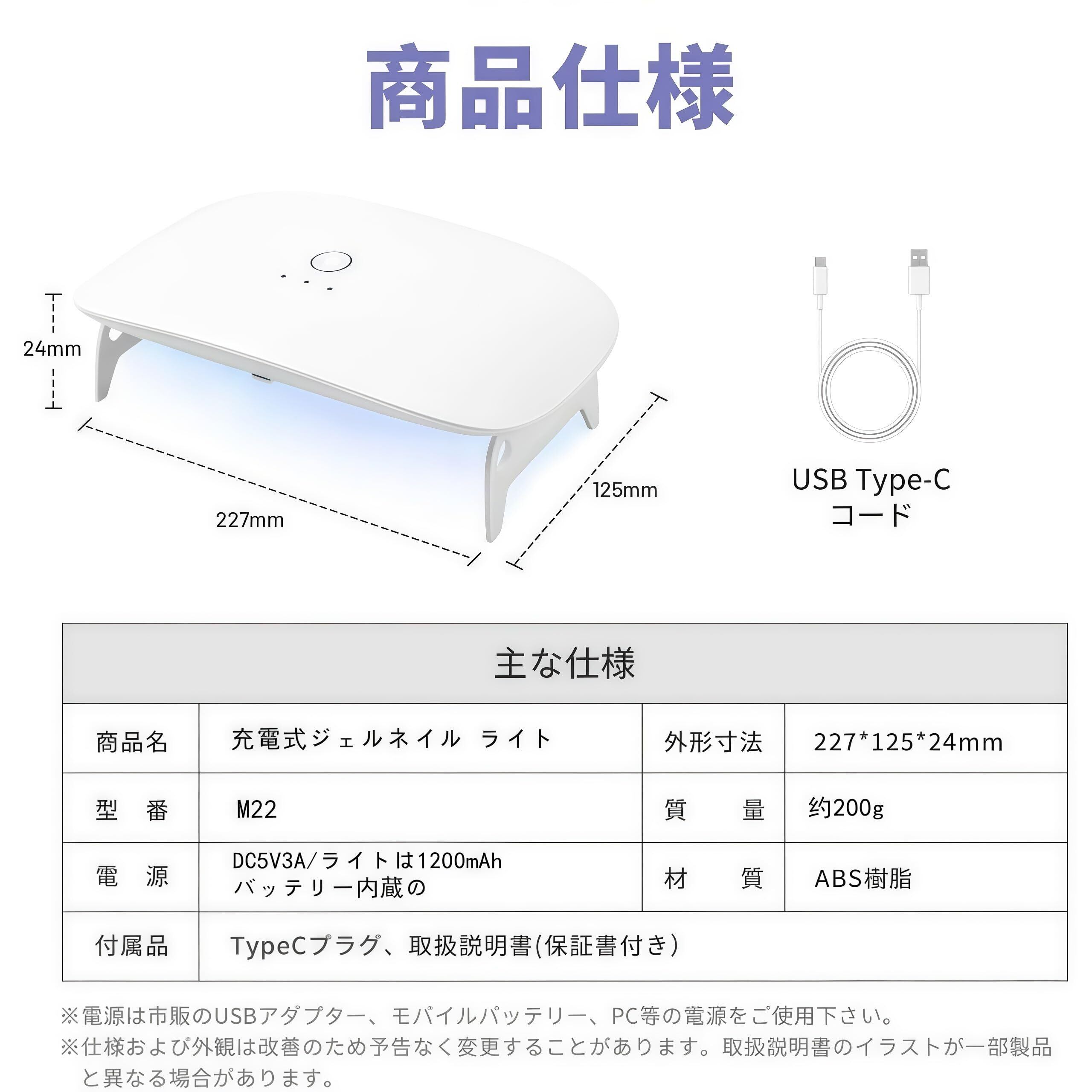 【USB給電】付属のUSBケーブルを使って、パソコンやモバイルバッテリーなどに接続して給電できます。UVライトのように消耗品を交換する必要がなく、ゴミが出ません。交換の心配がなく、環境に優しい省エネルギーネイルライトです。長い間のUVレジンやネイルを楽しむことができます。