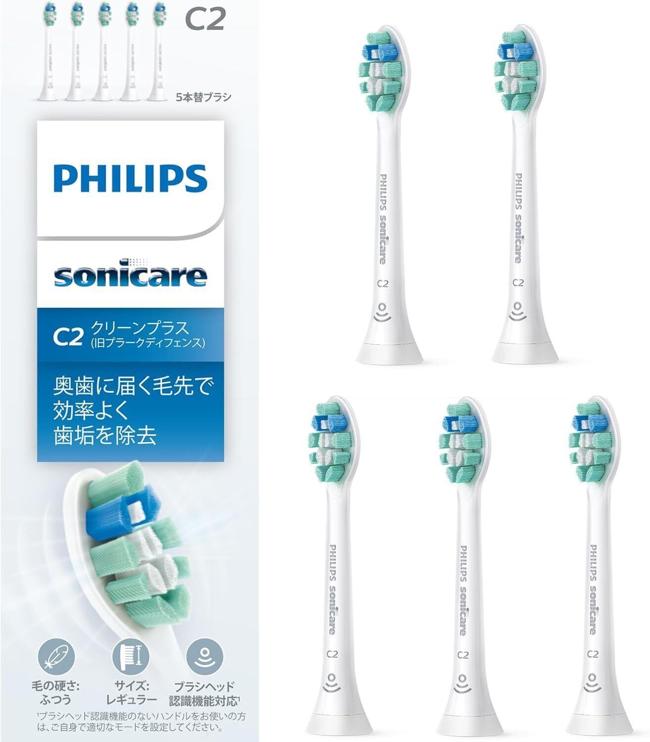 フィリップス 替えブラシ ソニッケアー クリーンプラスレギュラー (5本) 正規品 HX9025/67 ホワイト