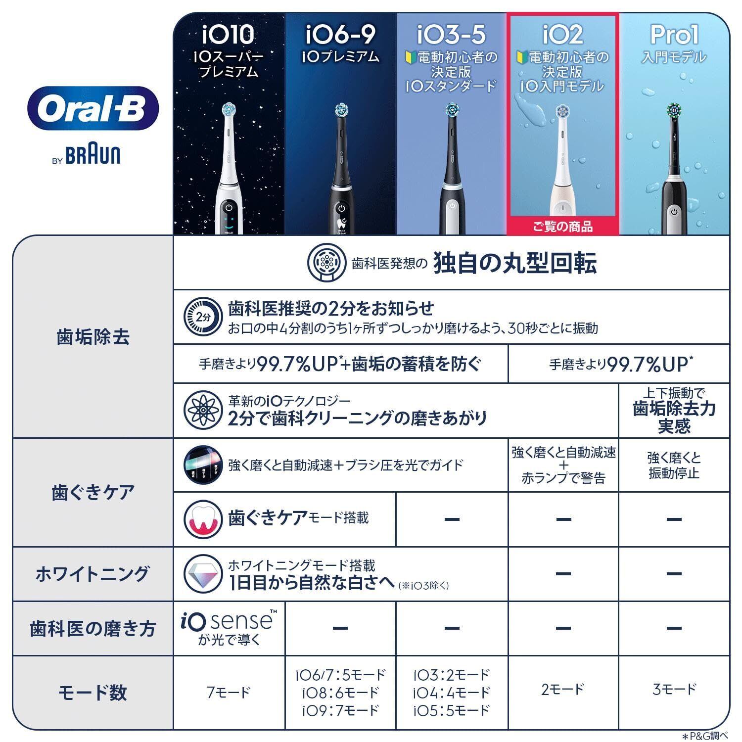 Oral B No.1 世界の歯科医師推奨 ** 歯垢除去力99.7%UP*電動初心者の決定版 必須機能充実のコスパモデル 電動歯ブラシ、歯磨き 革新的 オーラルB iO テクノロジー:オーラルB独自の丸型回転ブラシがマイクロバイブレーションしながら優しくブラッシング。より健康的な歯と歯ぐきへ。