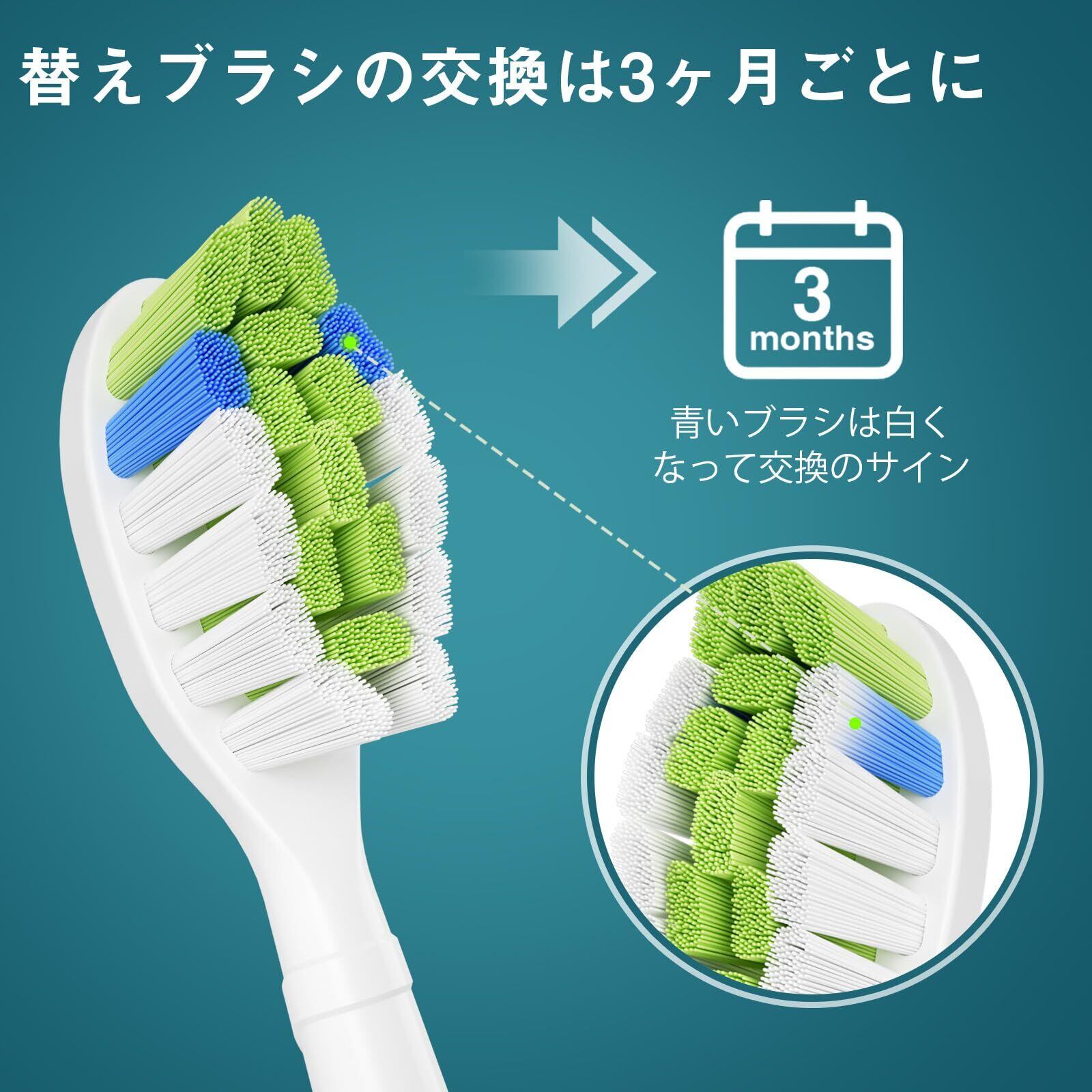 【衛生カバー&交換リマインダ】ソニッケアー用 の替えブラシは衛生カバーが付属して、ブラシ毛の形を維持して、ほこりや細菌の侵害を免れることもできます。また、変色毛を採用しているので、青いブラシの毛は徐々にフェードし、1/3が白くなると、3ヶ月以内に歯ブラシのヘッドを交換することをお勧めします。