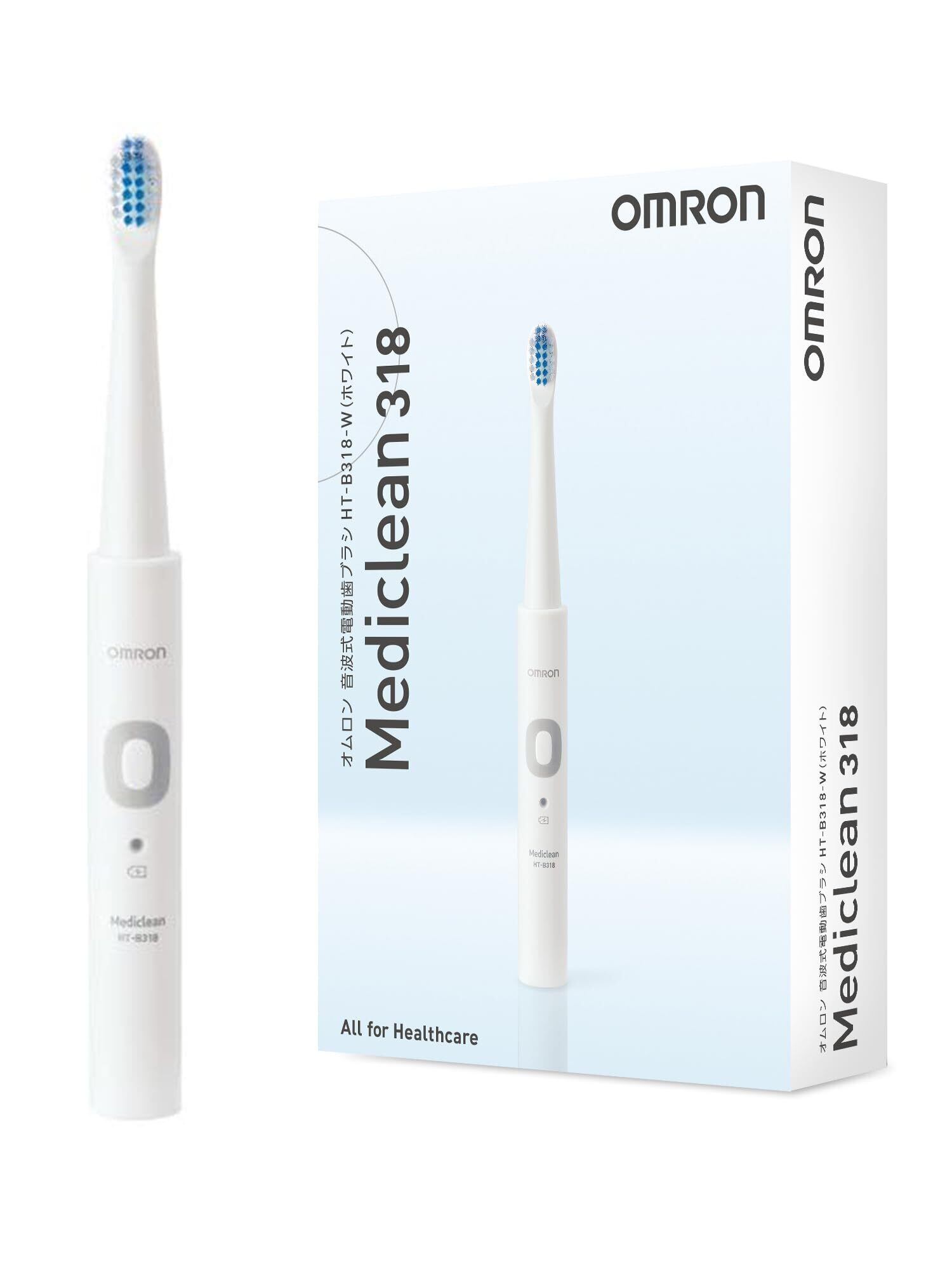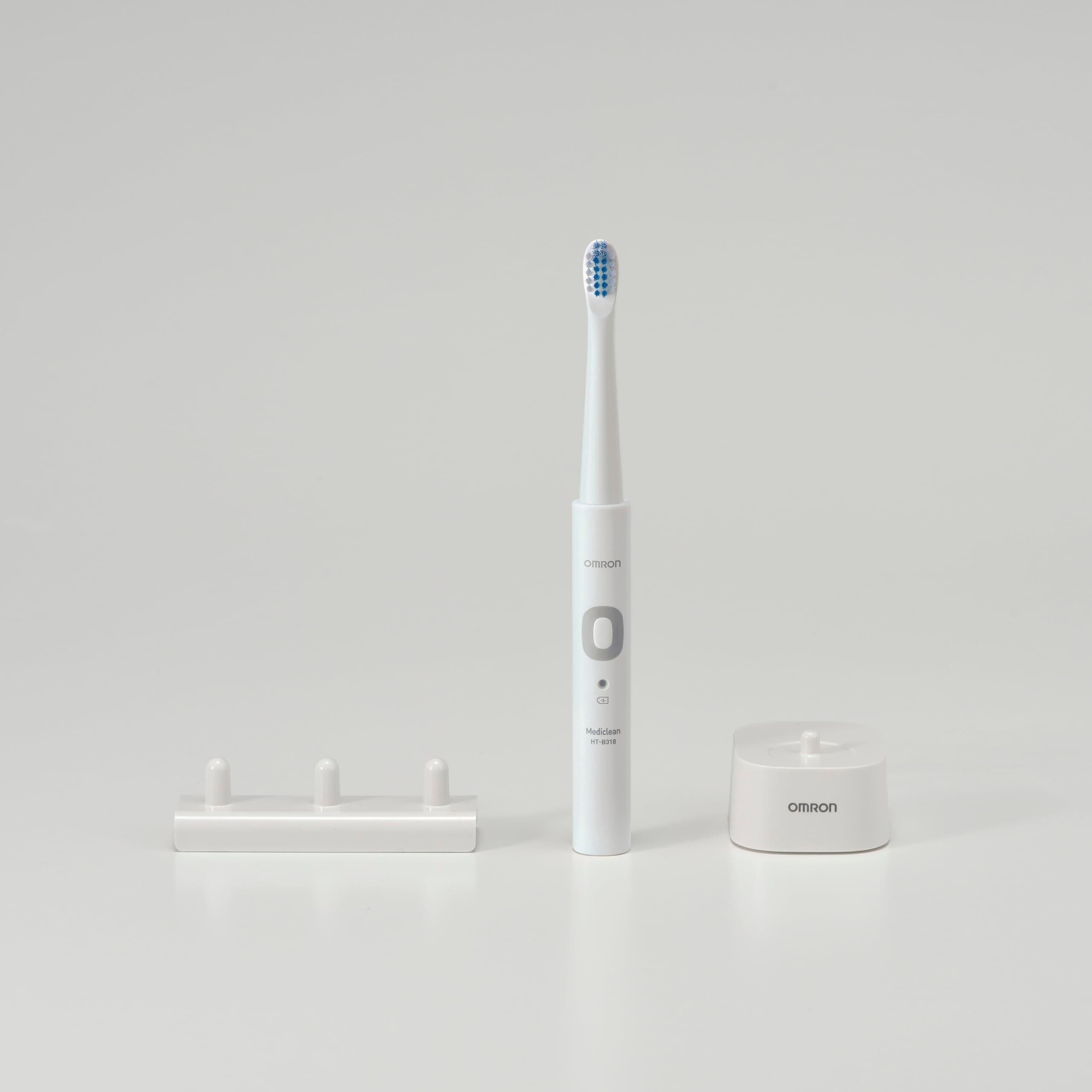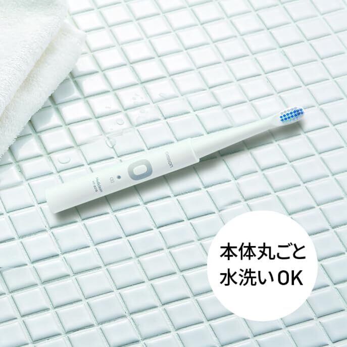 オムロン 電動歯ブラシ HT-B318-W ホワイト 軽量約46g 替えブラシ2本付き 音波式 充電式 ナビタイマー搭載