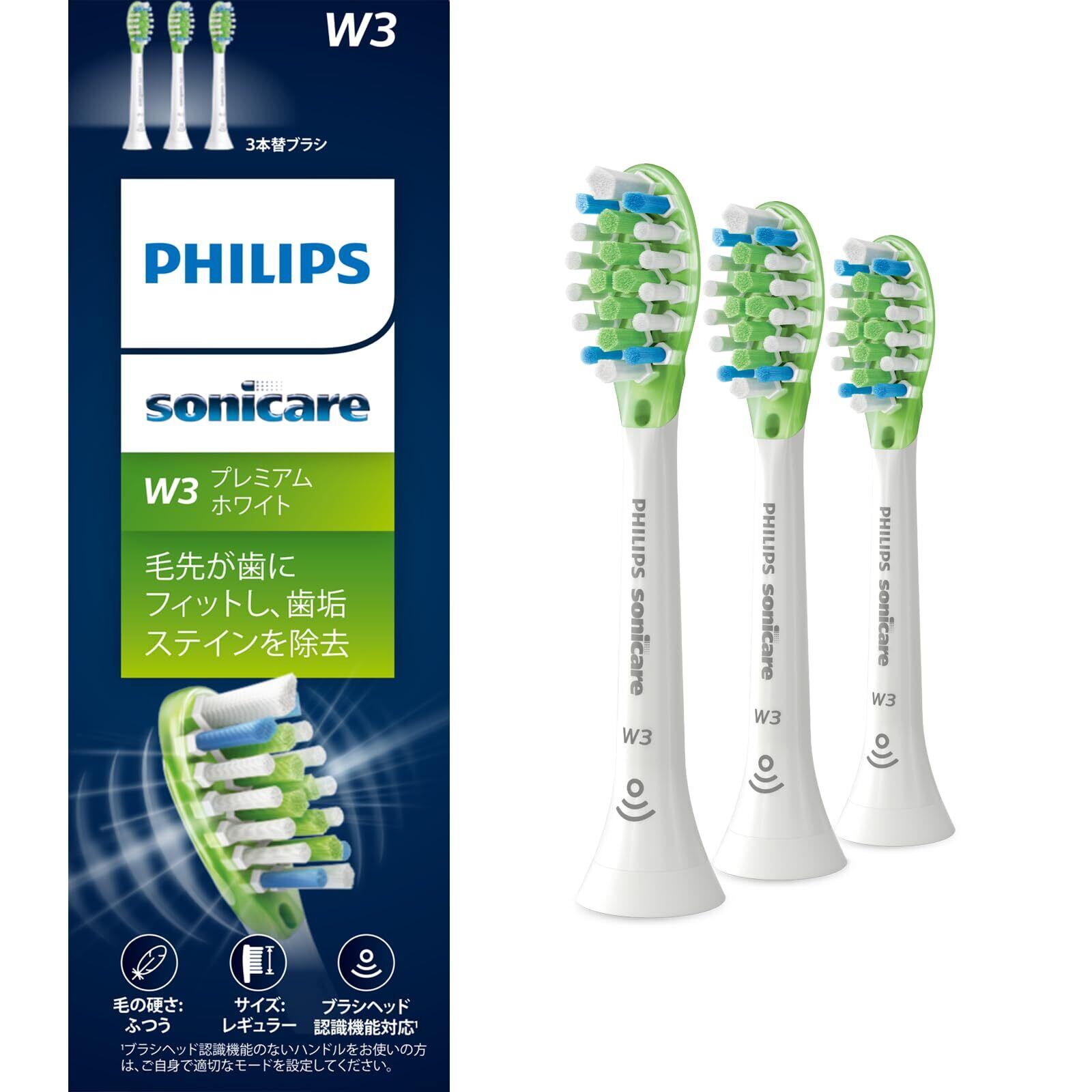 【数量限定】フィリップス 替えブラシ ソニッケアー プレミアムホワイトレギュラー (3本) 正規品 W3 HX9063/67 ホワイト