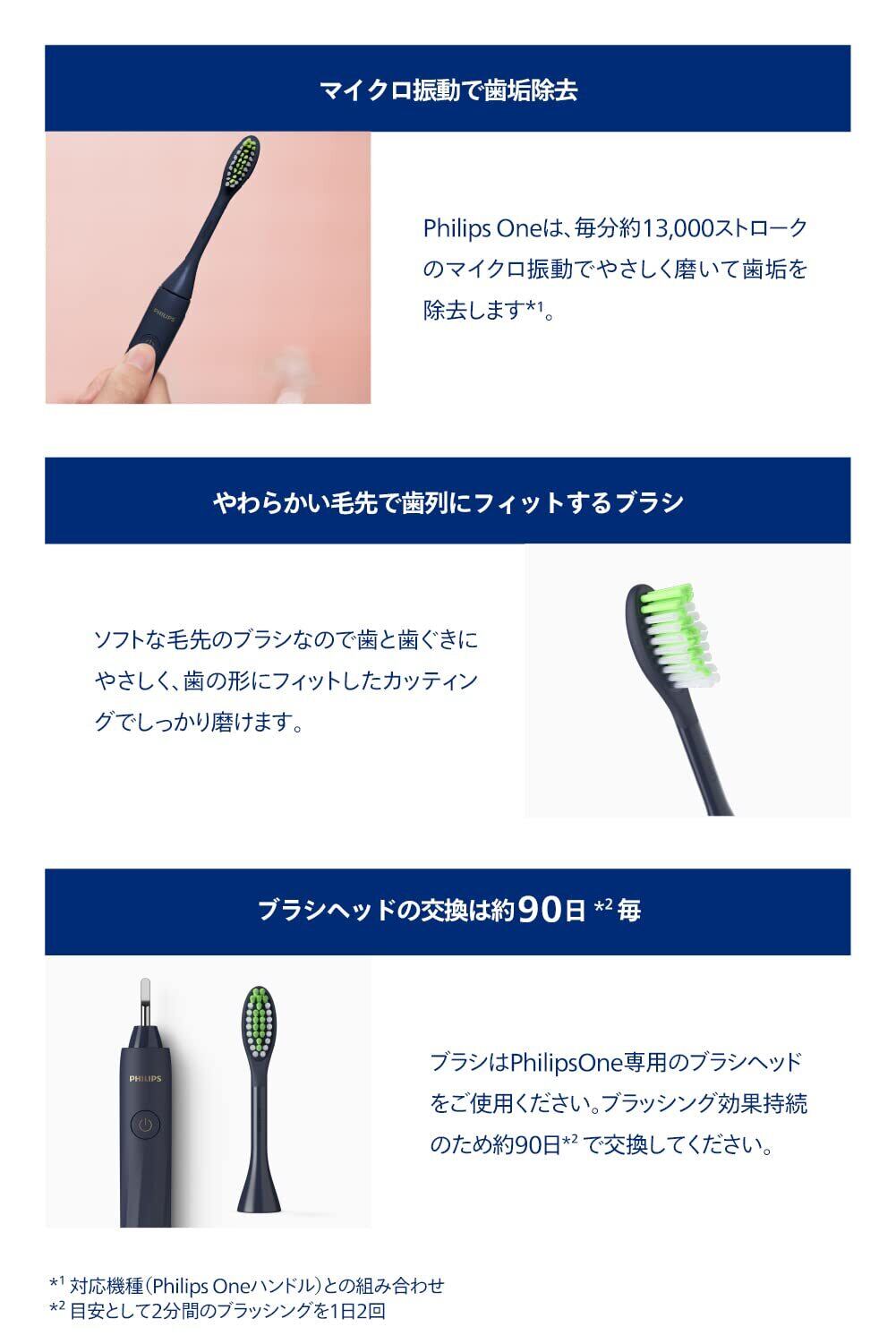 フィリップス 替えブラシ ソニッケアー Philips One専用替えブラシヘッド (2本) 正規品 BH1022/04 ミッドナイトブルー