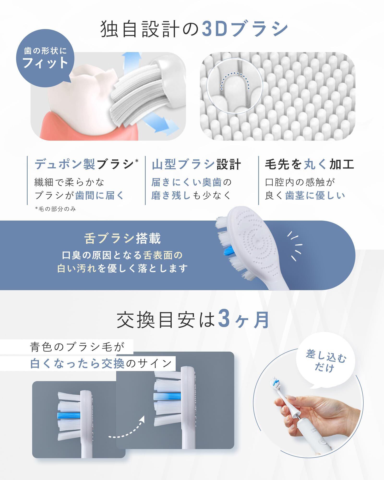 ●[セット内容]本体・替えブラシ(消耗品)×2・充電用USBケーブル・取扱説明書兼書〚1年付き〛、[Type-C USB充電]約4時間でフル充電 ●ブラシは3か月ごとの交換をオススメしております。(替えブラシのみも販売中 B0D7PQSZNP)