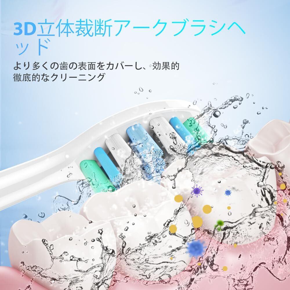 効果的な洗浄:交換用ブラシヘッドの輪郭を描いた音波歯ブラシの毛は歯の形にフィットし、掃除が難しい領域にも届き、口腔内でより効果的に機能します。 強力な振動を備えた歯ブラシヘッドの密集した毛先は、手用歯ブラシよりも最大 8 倍多くの歯垢を除去できます。