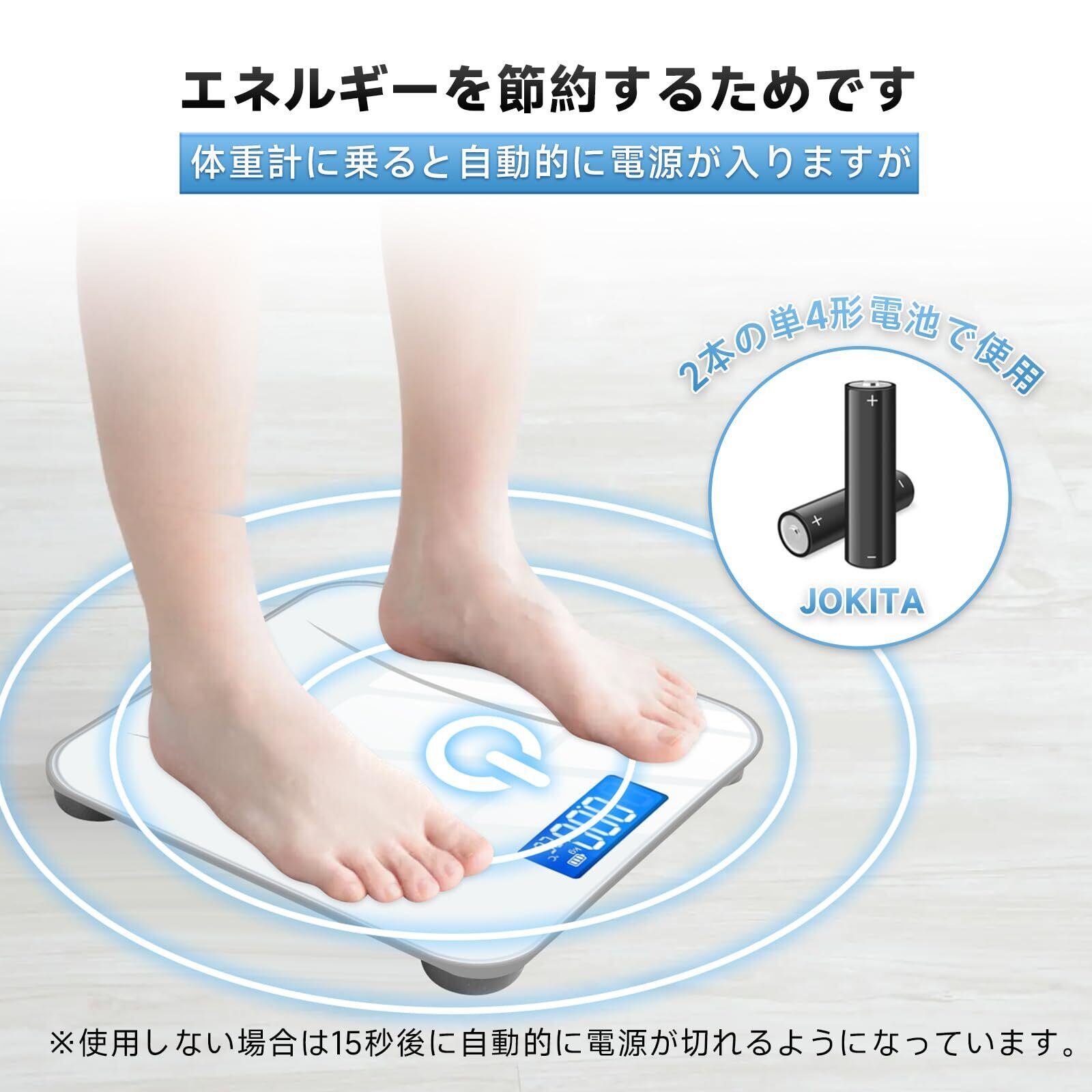 【数量限定】体重計 デジタル 電子スケール ヘルスメーター 乗るだけ 自動電源ON/OFF バックライト付 180kgまで対応 高精度ボディースケール コンパクト 軽量収納 日本語説明書付 (ホワイト)