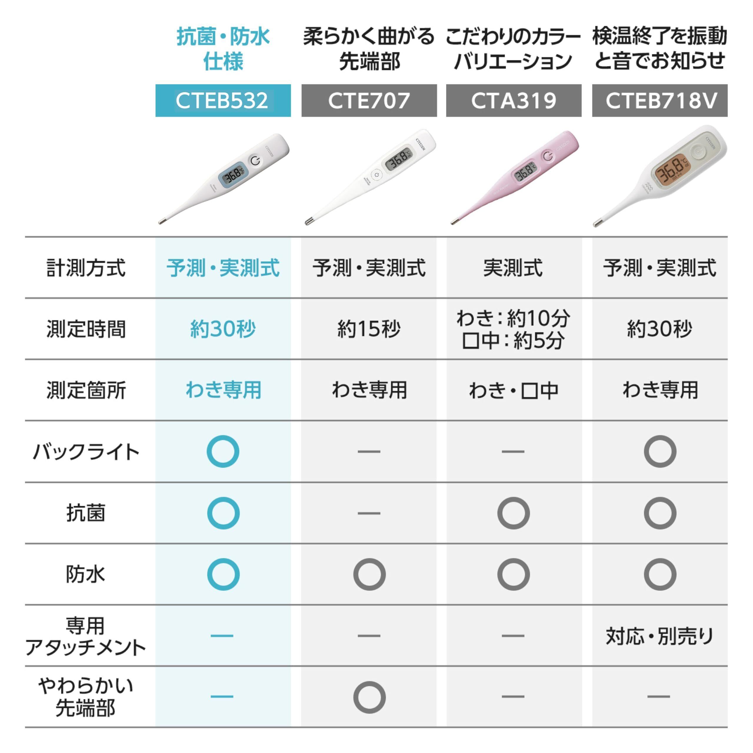 【限定セール】CITIZEN(シチズン) 電子体温計 CTEB532 バックライト付き 予測式 スピード検温 30秒 予測 ケース付き SIAA抗菌 加工 洗える抗菌素材でいつも清潔 暗い部屋でも見える バックライト 防水 腋下体温計