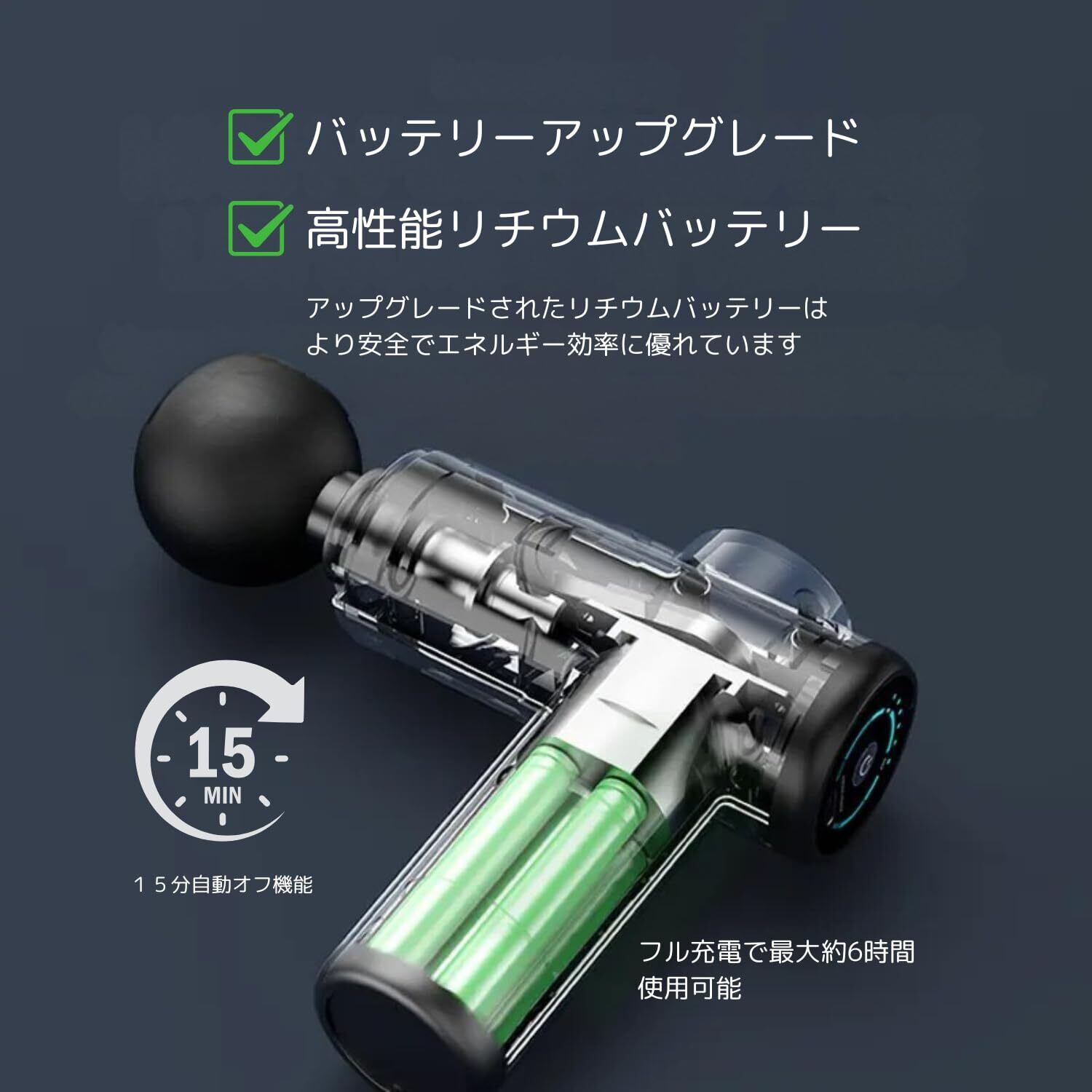 整体師監修 筋膜リリースガン 収納ケース付きUSB充電式ですのでコードレス軽量 自動オフ 4種類のアタッチメントが用意され、Type-C充電ポートを採用、いつでもどこでも気軽に充電可能 簡単操作 独自のブラシレスモーターを搭載、大容量バッテリーが搭載し、長時間ご使用できます。安心の静音設計、早朝や深夜でも使えます。パワーを維持しながら効果を実現。自宅やオフィスなどで使用しても、周囲の人の邪魔になることはありません。片手でも気楽に使える軽量でストレスなく手軽にご使用いただけます。デザインがシンプルで使いやすく、手に馴染むサイズ感がとても良いです。各種のヘッドが付いているので、部位に応じて使い分けられるのも嬉しいポイントです。自分好みの強弱で楽しむことができます。ハンディガン コードレスで使えるのも大きな魅力です。全体的に、コストパフォーマンスでリラックスしたい方にはぜひおすすめしたい一品です! 強さは6段階で上がるので強さは自分ごのみにぴったり合わせれます。整体師監修 筋膜リリースガン 収納ケース付きUSB充電式ですのでコードレス軽量 自動オフ 限定商品のため他社では販売していません。 【安心の1年付き】 本製品はお買い上げ日より1年間の国内メーカーが付いております。 万が一の不具合・初期不良などがございましたら、迅速に対応させていただきます。 お困りの際は、注文履歴かメールにていつでもお気軽にご連絡ください。