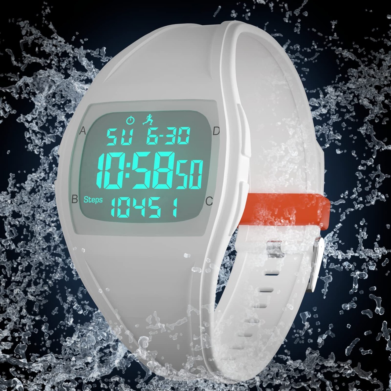 Amain 歩数計付き ウォーキングウオッチ AWW-2502 振動アラーム 目覚まし時計 防水機能 ストップウオッチ付き (ホワイト)