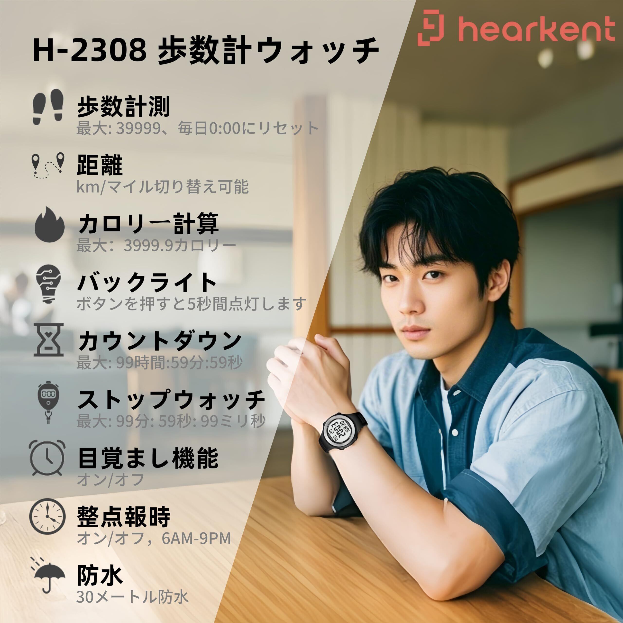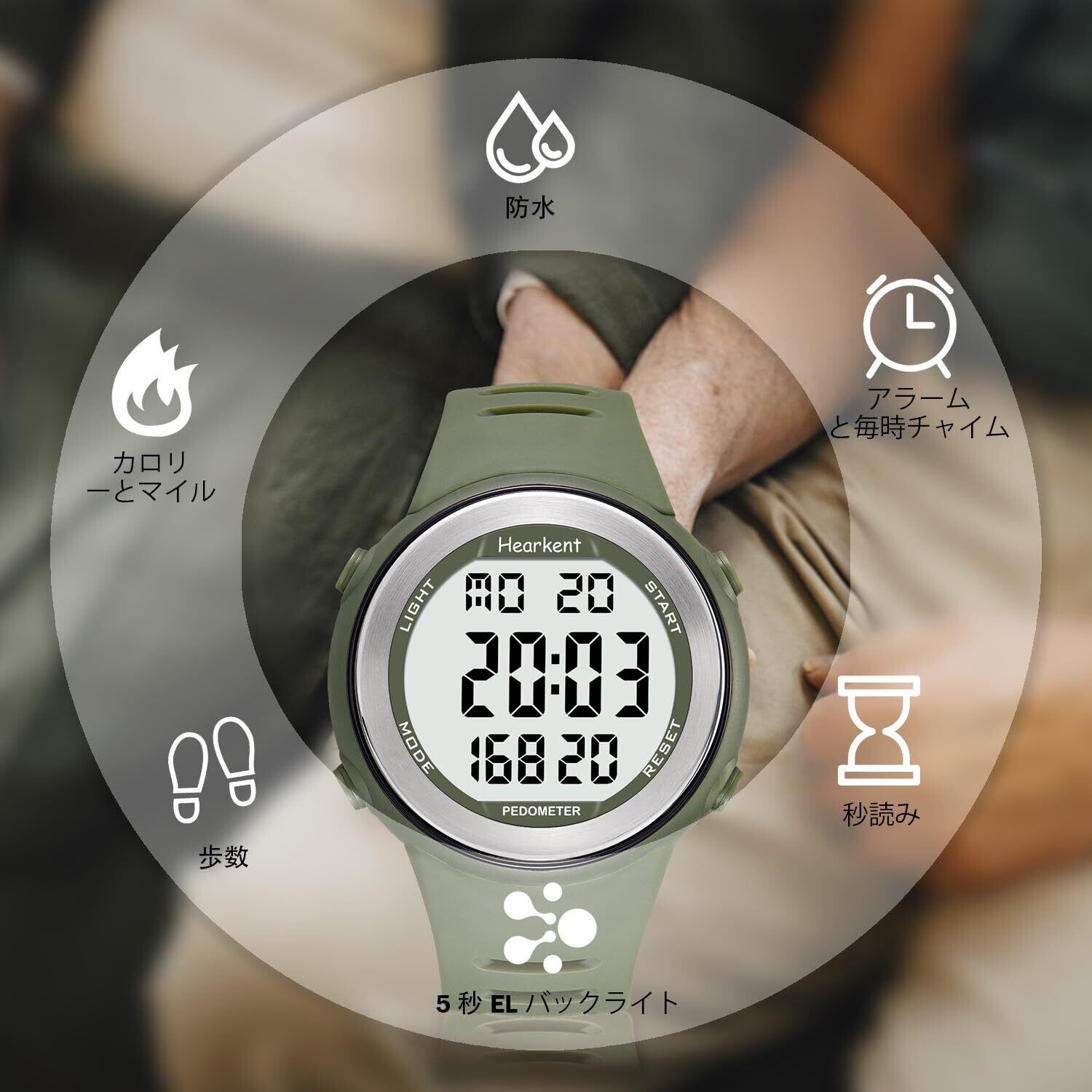 【新着商品】Hearkent 防水歩数計ウォッチ メンズ/ティーンズ向け Bluetoothアプリ不要 ステップカウンター、カロリー、大型LCD数字付きスポーツウォッチ